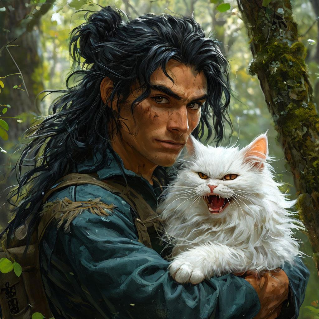 — Какая же ты миленькая! Какая пушистая и мягкая, кис-кис-кис. — Умиленно протянул разбойник почесывая Маше щеки и шею. Маша почувствовала, как от его движений кошачья морда собирается в морщинистый комочек вокруг носа.