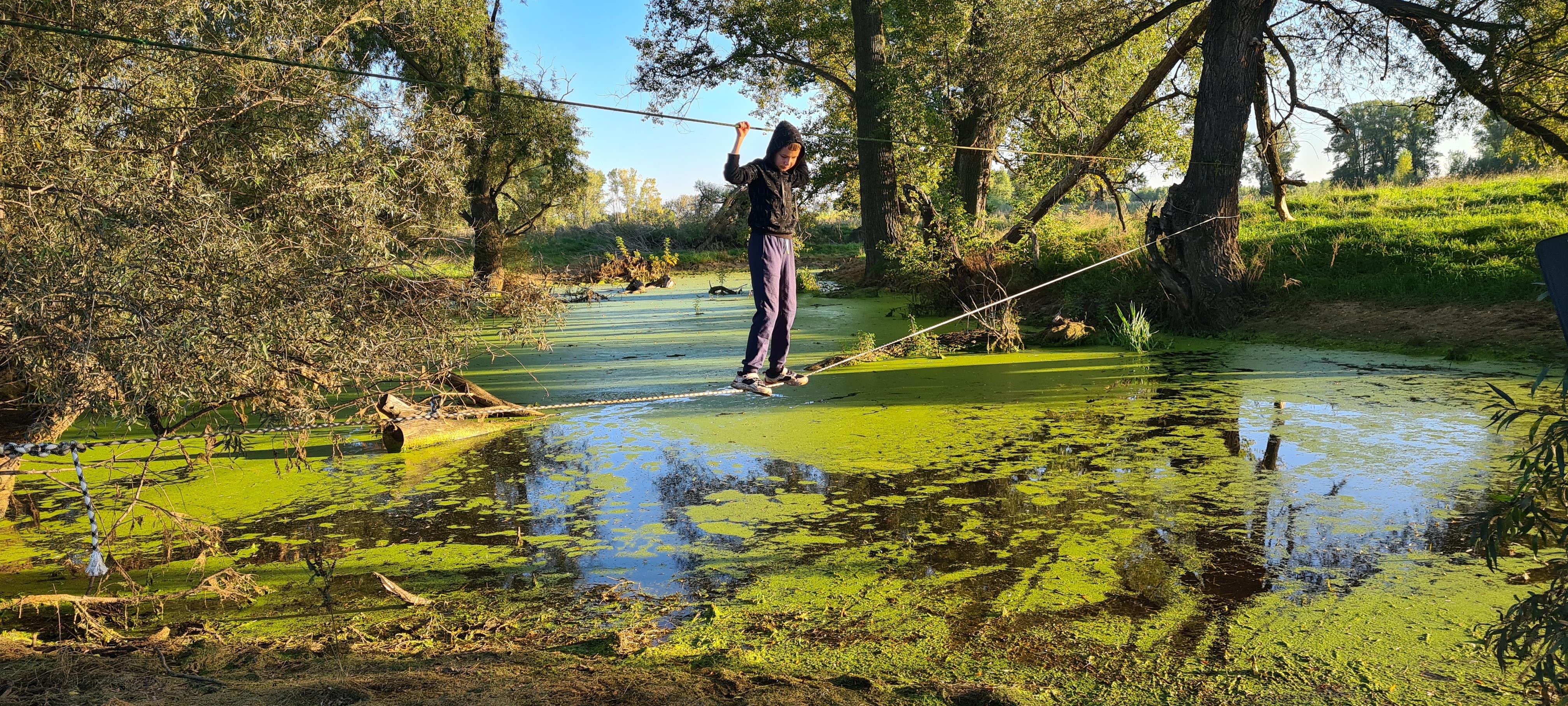 Благодаря друзьям, смогли построить полосу препятствий, навесить переправу над болотом с лягушками, обустроить учебные точки по стрельбе из винтовки, метанию ножей, гранат и тактической медицине и провести настоящую "Школу Выживания"!