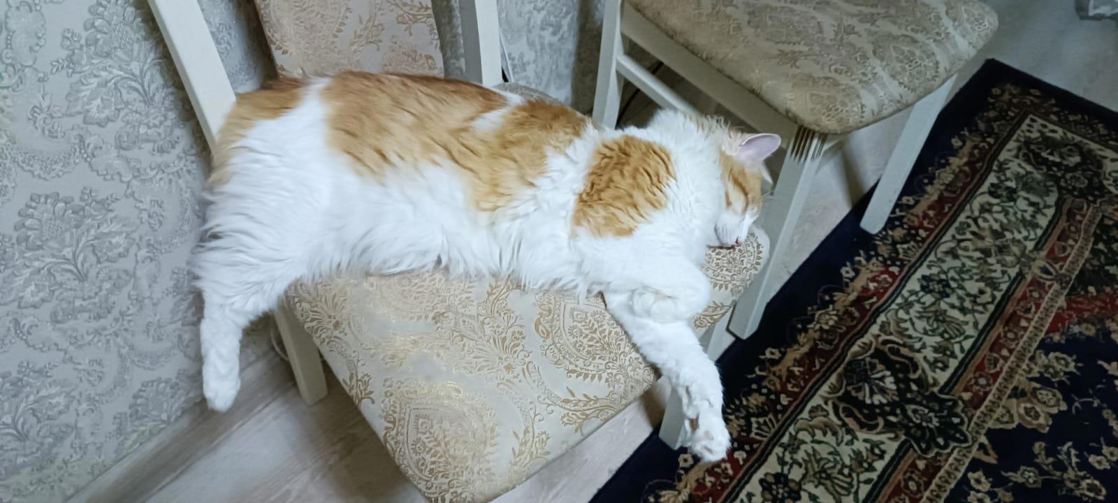 У нас с ним нейтралитет. Он не любит когда его гладят. Ни разу никого не оцарапал, но и на коленки ни к кому не запрыгивает. Укладывается рядом. В ногах, на стуле неподалеку, хотя уже не помещается.