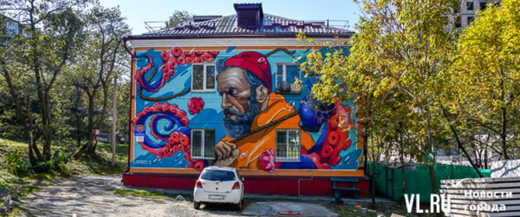 Художник из Петропавловска-Камчатского расписал торец жилого дома на Новожилова, 25. На ближайшие годы между окнами жилых квартир поселился колоритный моряк со своим уловом – осьминогом, держащим маяк Токарёвской кошки. А с внутренней стороны входной двери в единственный подъезд теперь изображён аппетитный пончик.