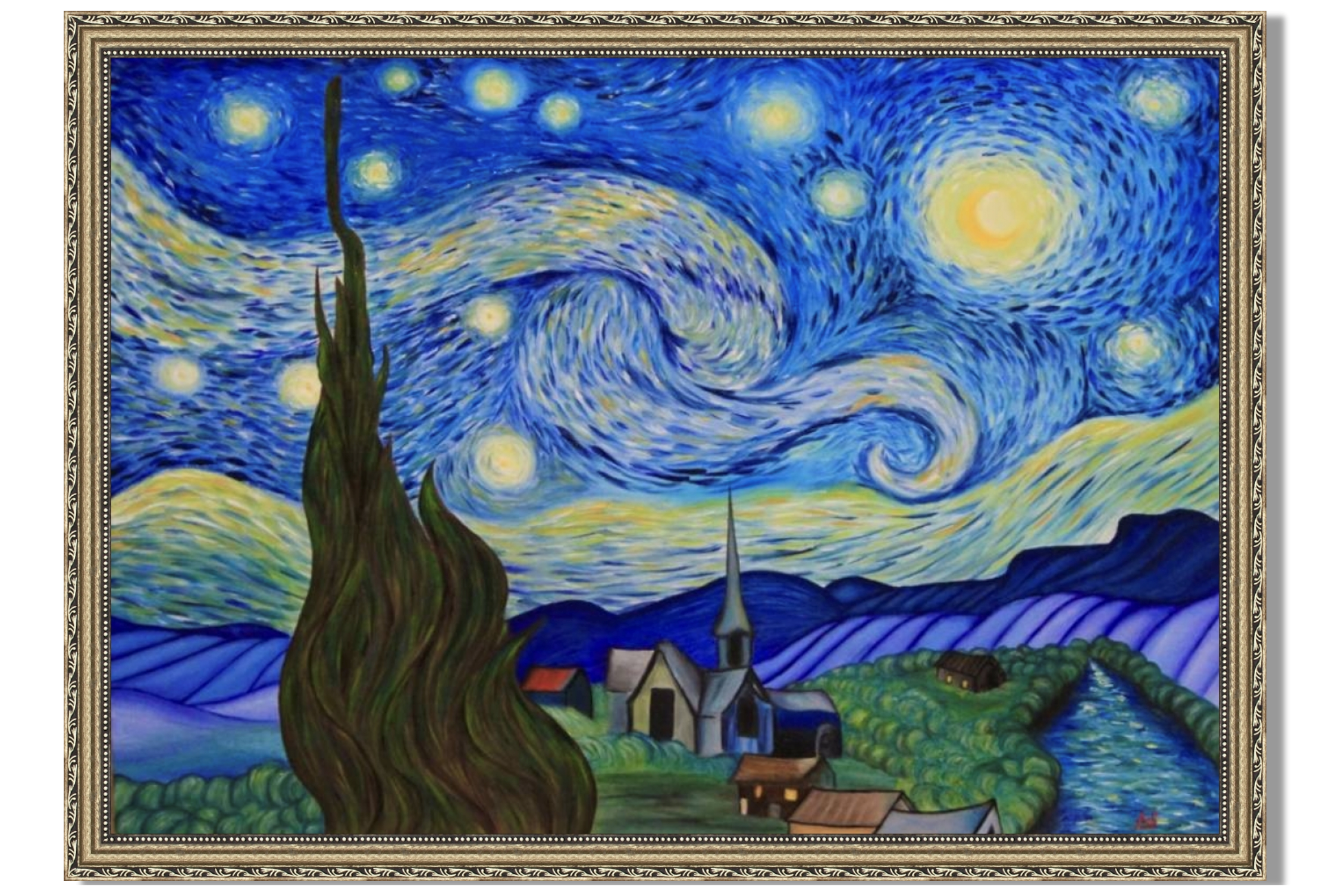 Ну как не перерисовать самую известную картину Ван Гога "Звездная ночь" в своей интерпретации?