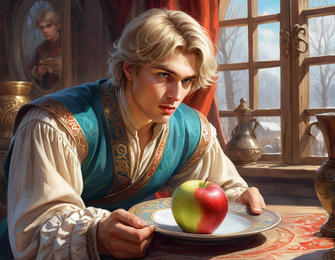 Мужчина сходил, умылся и снова вернулся к тарелочке с яблочком. Положил плод, покрутил, покатал!