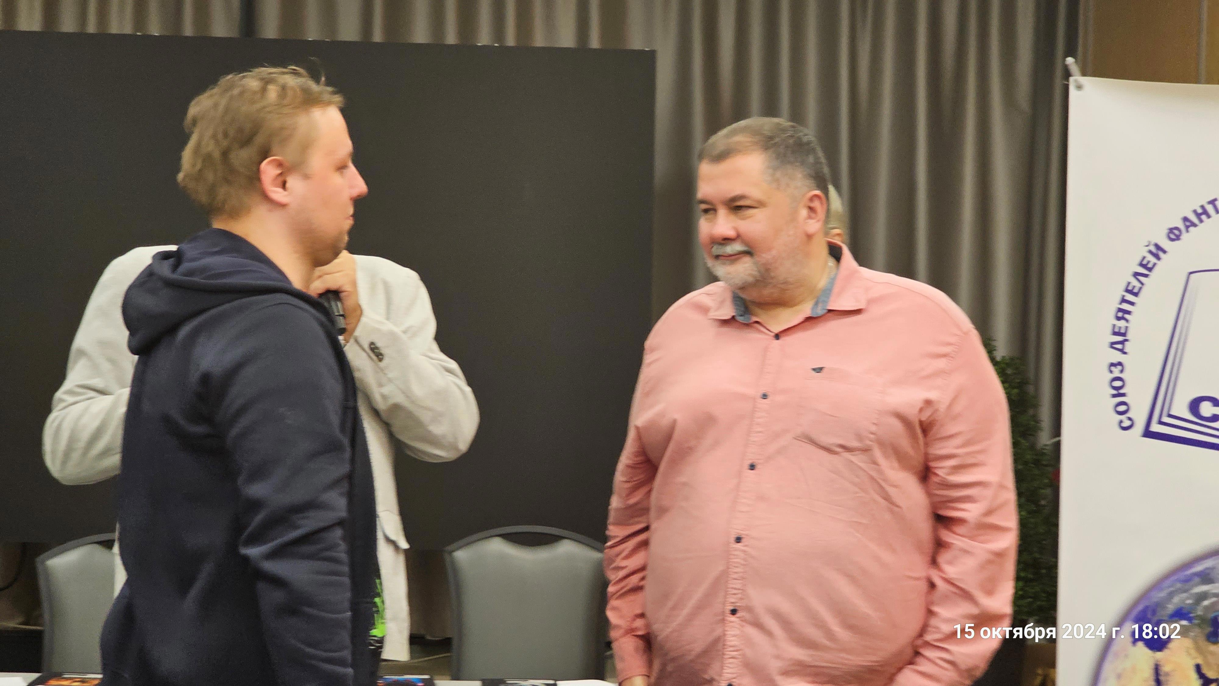 Чувствуется, что людей захватил и мир, и сюжет. Мне озвучили столько великолепных идей, что теперь я просто обязан их воплотить в жизнь. Мало того, что сам разбор длился долго, он не закончился в официально отведённое время. Когда мы ушли на перерыв, коллеги по группе за чашечкой кофе и бутербродами продолжили с удовольствием накидывать свои соображения. Когда мы вернулись обратно и ждали Сергея Лукьяненко, обсуждение книги всё равно не закончилось, пока Мастер не начал разбирать следующую :)
