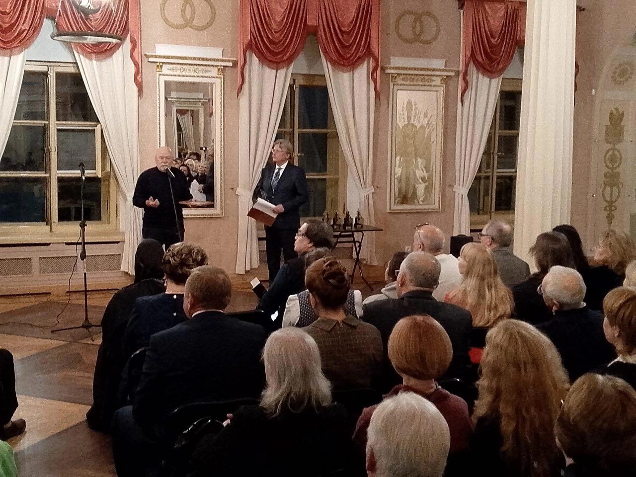 Автор: 01В Царскосельском лицее прошло вручение Царскосельской художественной премии. В этом году лауреатами стали: кинорежиссер Сергей Урсуляк («Летние люди», «Ликвидация», «Праведники»), писатели Евгений Водолазкин ( «Лавр», «Авиатор», «Чагин»), Михаил Кураев (книги по русской истории), Сергей Арно («ИСТОРИЯ ЛИТЕРАТУРНОГО ПРОЦЕССА от дворца Шереметьевых до швейных мастерских»), создатель детского издательства «Самовар» Александр Шевченко, генеральный директор Арт-центра «Пушкинская-10», вице-президент «Товарищества СВОБОДНАЯ КУЛЬТУРА» Мирон Муждаба и еще ряд выдающихся деятелей театра, музыки, кино.