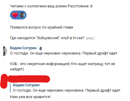 Автор: Вадим СатуринКхм, рассказываю. Вчера маленьким, уютным и очень откровенным онлайн-клубом читателей «Расстояние: 8» говорили про роман, рассуждали про героев и финал. Даже проголосовали за SEX!