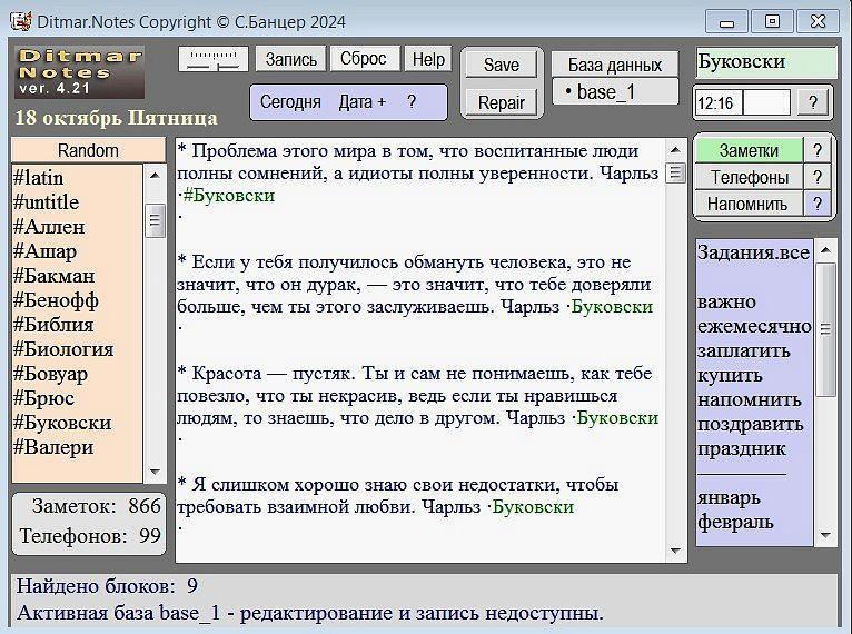 Автор: СержПриложение Ditmar.Notes v.4.21 из пакета Помощника автора Ditmar стало лучше.