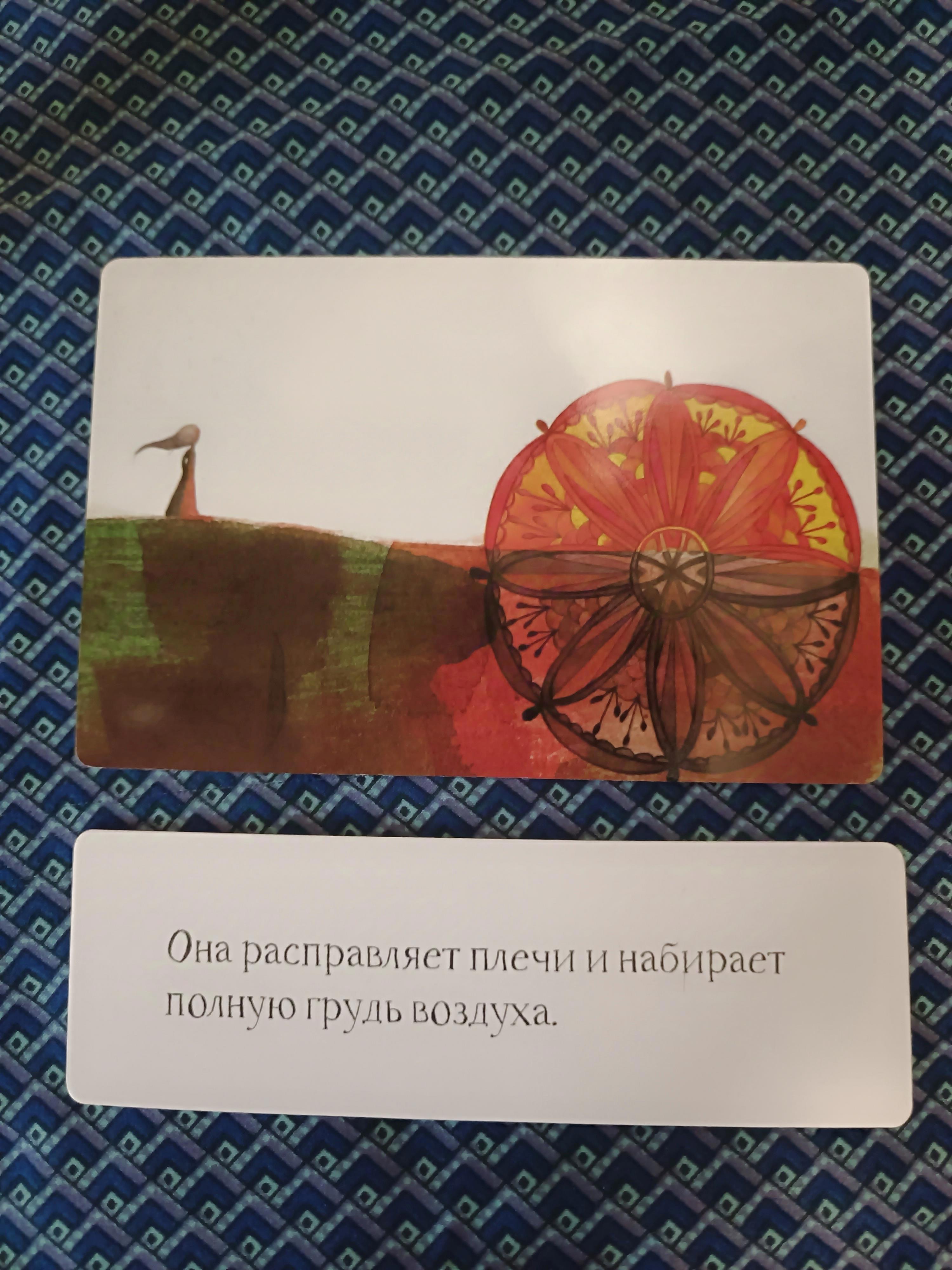 Допив свой кофе, Ари вынимает из коробки колоду метафорических карт. Тасует их задумчиво. Затем сдвигает и вытягивает ту самую.