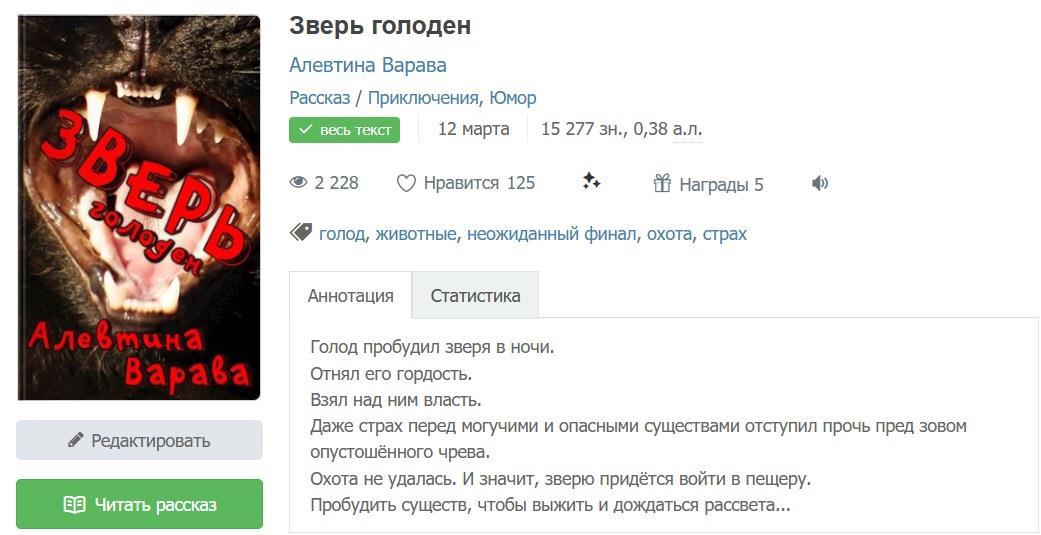 Автор: Алевтина ВараваГолод пробудил зверя в ночи.
