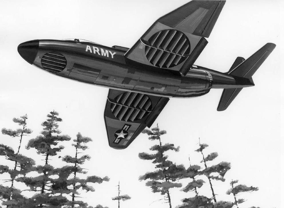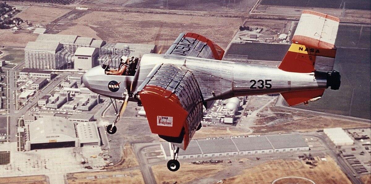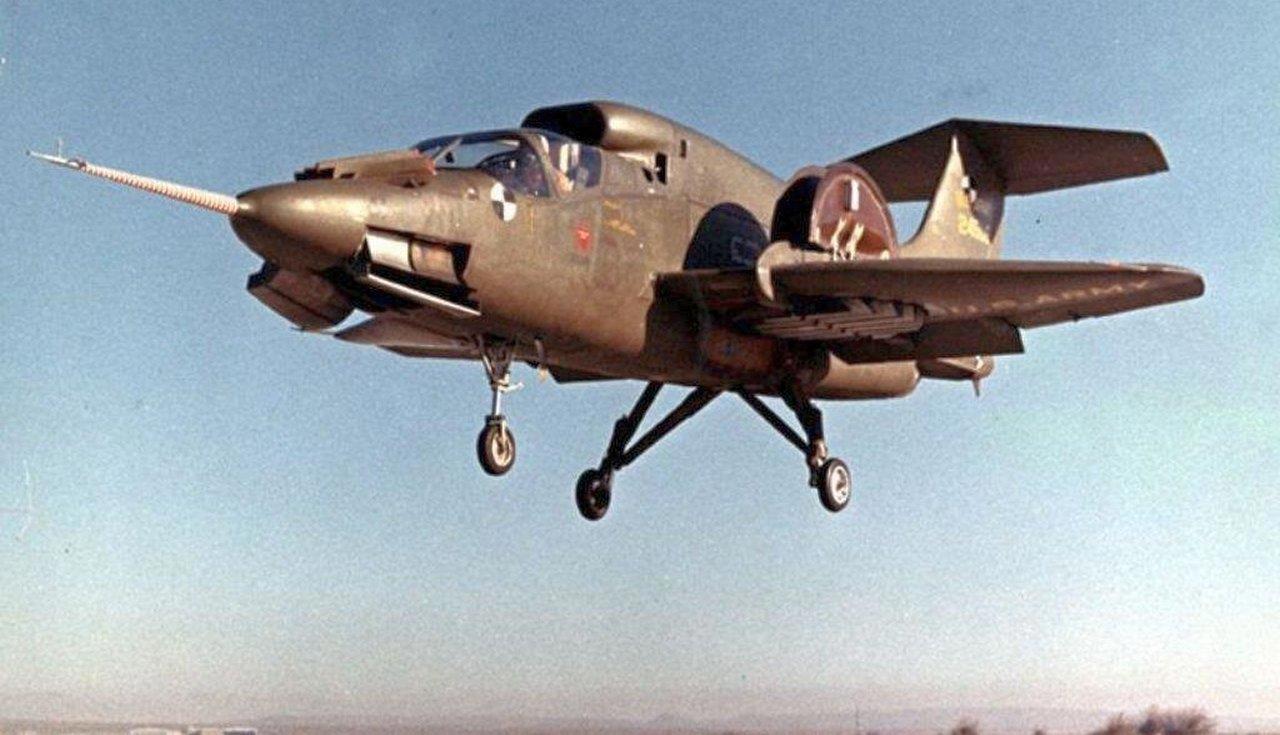 Кстати, об опытных машинах. В 1964 году впервые поднялась в небо ещё одна экспериментальная вертикально взлетающая машина – Ryan XV-5 «Vertifan»:
