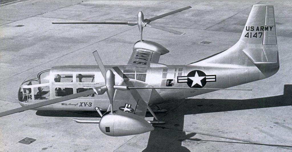 Однако работа в этом направлении продолжалась. Серьёзных успехов достигла в этом направлении фирма Bell. В 1951 году фирма получила заказ на проектирование конвертоплана. Между прочим, получила по конкурсу, в котором участвовали 17 проектов разных фирм. Было непросто. Первый результат получили только в 1955 году. Это был экспериментальный конвертоплан Bell XV-3. Вот такой: