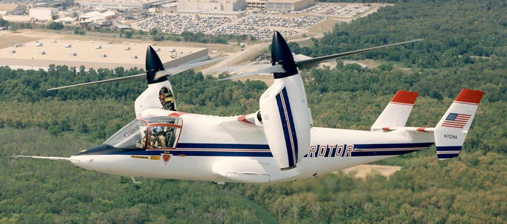 Это уже машина куда более симпатичная, чем Bell XV-3. Причина не в пристрастиях сэшэашников к красоте, а куда проще. Дело в том, что строители вертолётов на месте не сидят – их машины потихоньку тоже набирают скорость. Проектировщикам конвертопланов приходится напрягаться, чтобы доказать нужность своей работы. Машина взлетела в 1974 году. Она уже могла нести полезную нагрузку. Два двигателя по полторы тысячи лошадиных сил могли разгонять её до 560 км в час. Рост налицо. Сейчас машина тоже в музее.