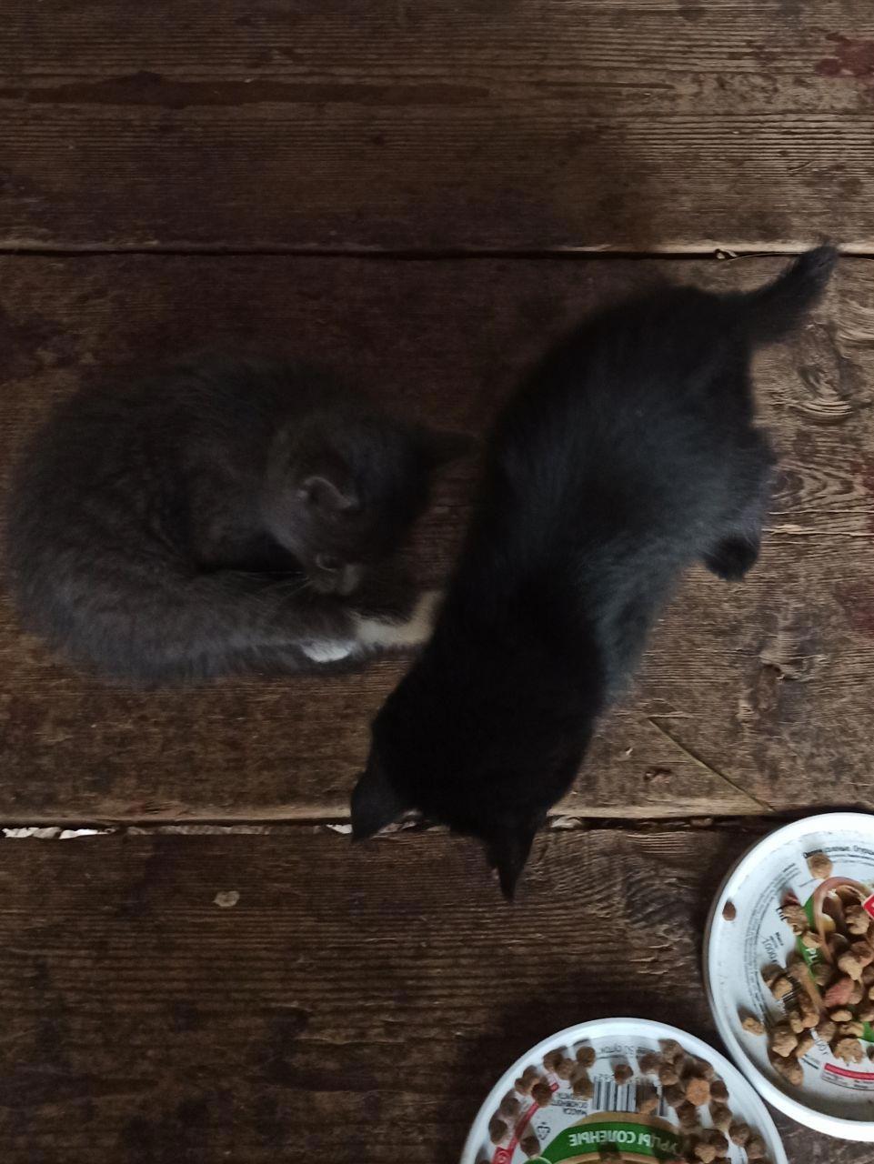 В твердом остатке остались двое. Подозреваю, что есть и третий, типичный гаврик - черный с белой мордочкой. Он продержался дольше остальных и, возможно, прибегает поесть, когда я ухожу. Но надежды на это мало.