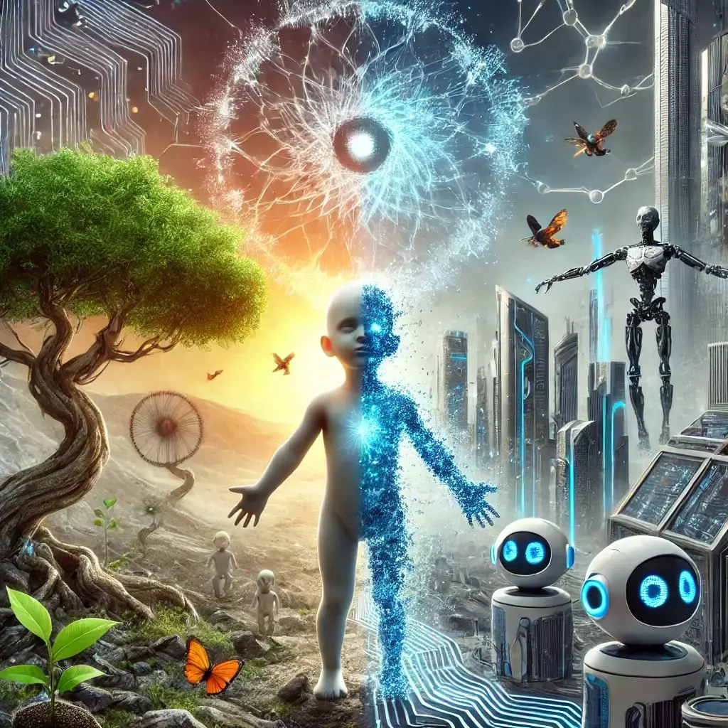 1. **Симбиоз биологии и технологий**. В будущем, если искусственный разум (ИИ) и живые существа смогут взаимодействовать на глубоком уровне, возможно появление новых форм жизни, где органическое и неорганическое сливаются. Например, если ИИ сможет интегрироваться в биологические системы, можно предположить создание "гибридных" существ, где генетический материал человека будет дополняться цифровыми или нанотехнологическими элементами. Такие существа могли бы сочетать биологическую эволюцию с быстрой технологической адаптацией.