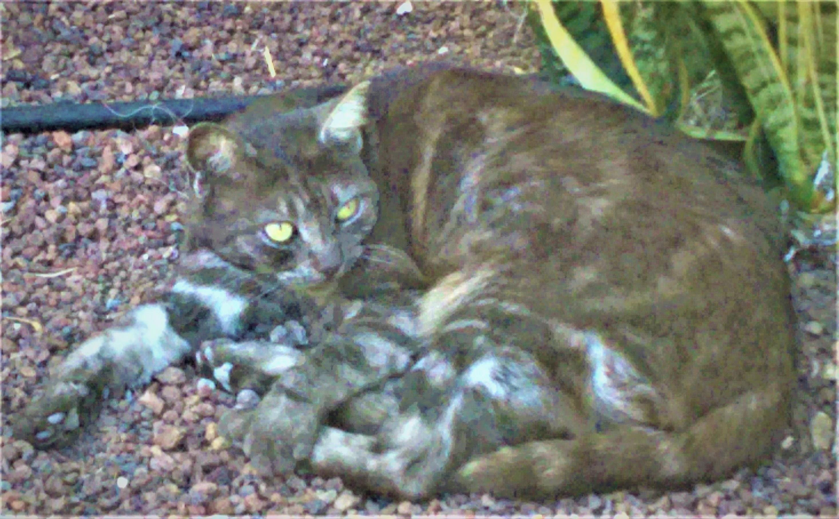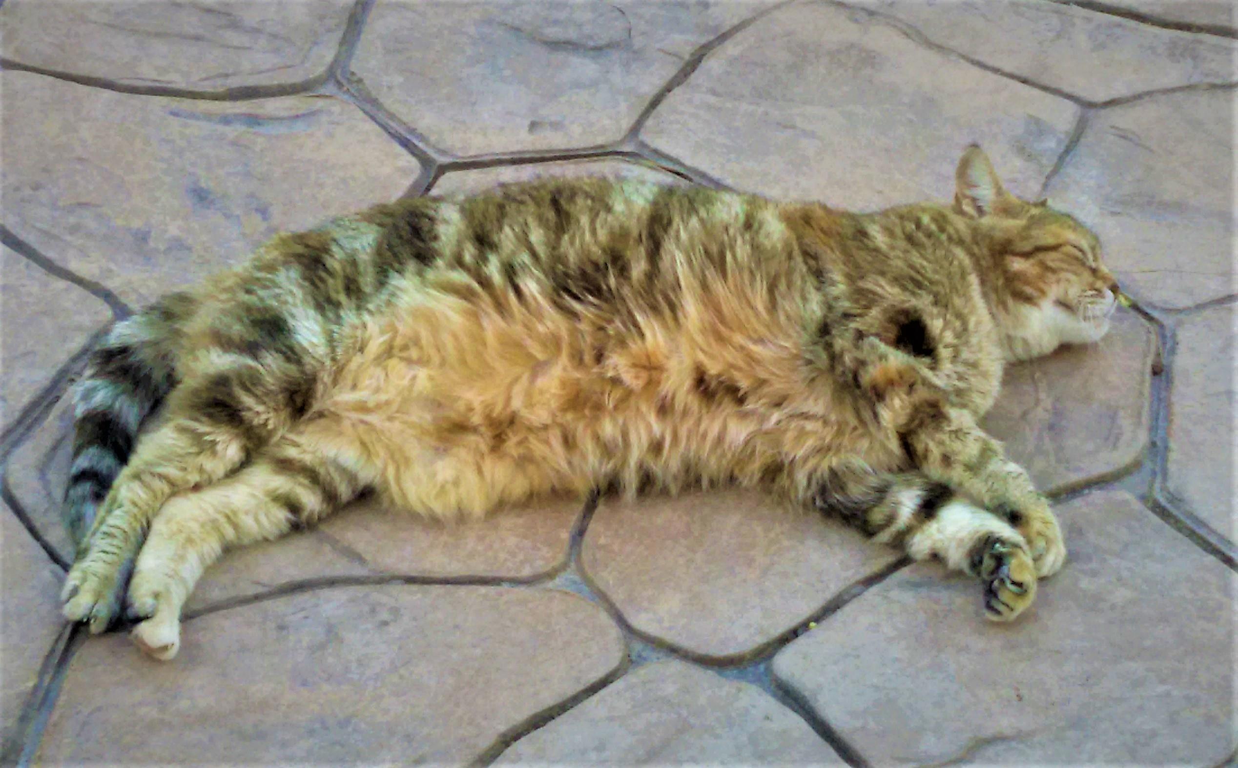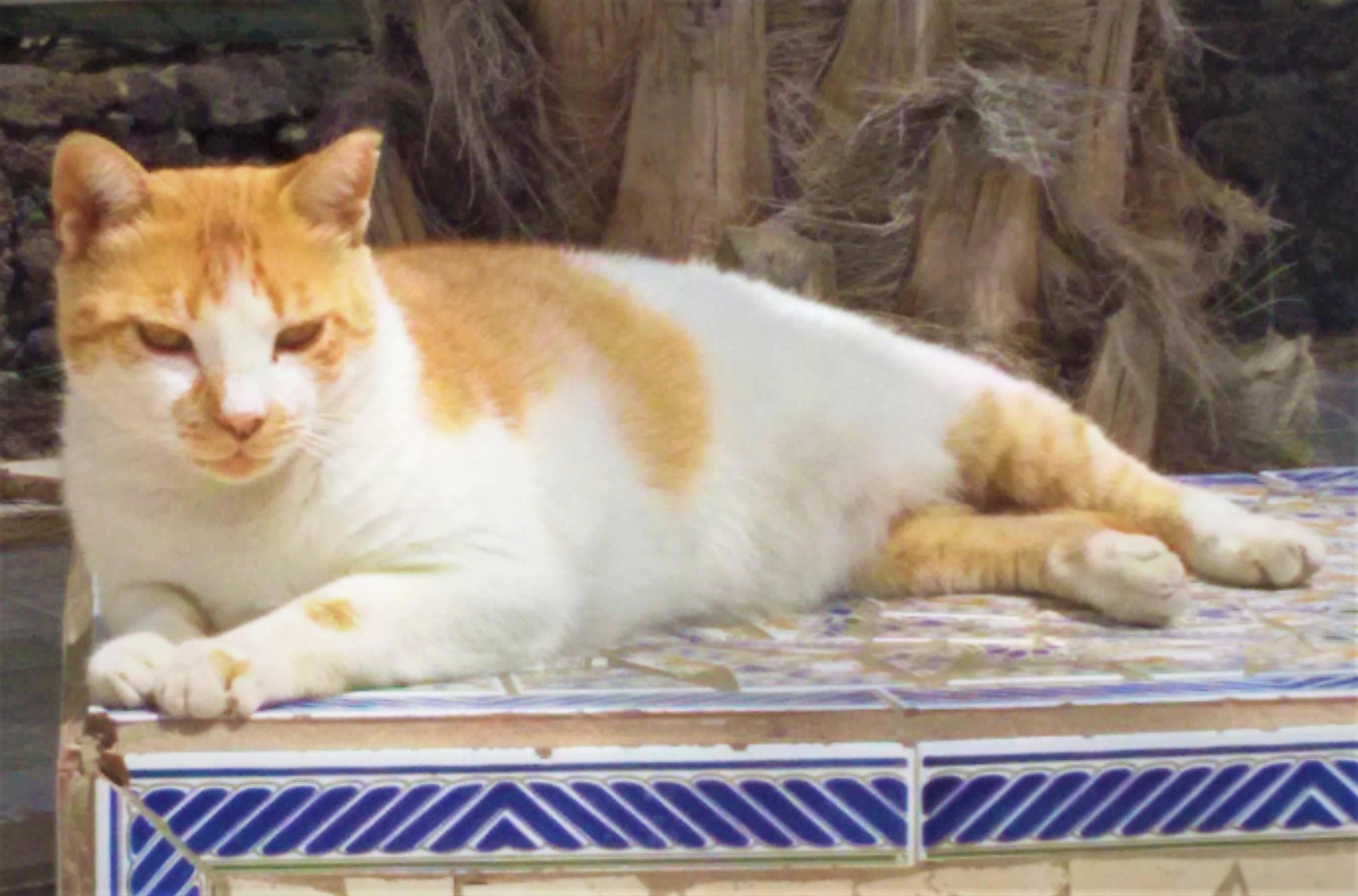 Его независимые соплеменники прекрасно лазают по скалам, обходят дозором городок и территорию отелей. Видела одного усатого-хвостатого красавца, уютно расположившегося на столе в холле. Котик занимал почти весь стол.