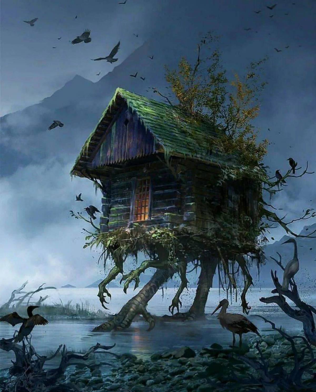 Сбитый из досок домик, весь порос мхом и покрылся тиной, словно стоял на болотах. Он был небольшой, с девичью спальню в монастыре. Но даже такие размеры казались слишком тяжёлыми для двух тонких стоек, поднимавших его вверх метров на десять.