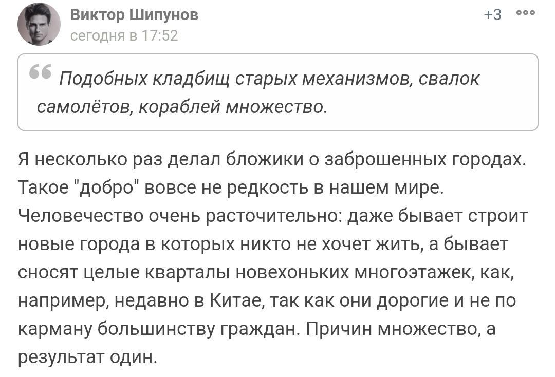 N.B. Подобных кладбищ старых механизмов, свалок самолётов, кораблей множество. По всему миру. На это тоже грустно смотреть. Но это как-бы, более или менее нормально.