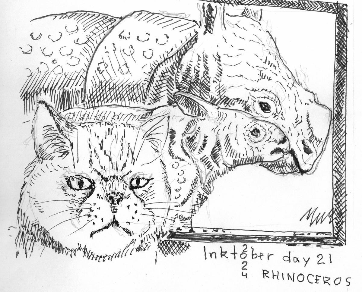 Автор: Вадим ЧичеринКот узнал, что темой двадцать первого дня ИнкТобера стал Носорог. Ну вы же знаете котов?