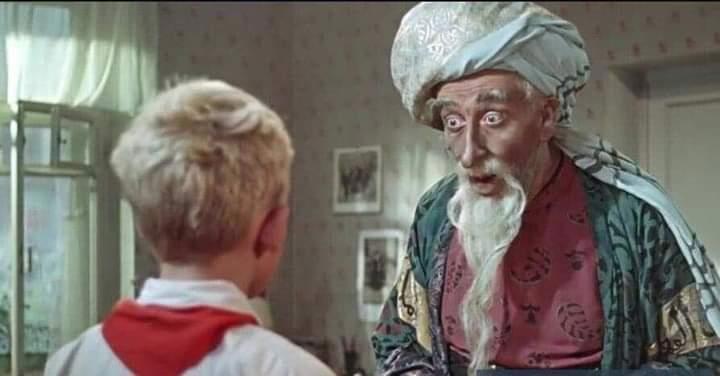 В кинотеатре рассерженный Хоттабыч вспоминает, что он настолько могущественный джинн, что с ним «ничего не мог поделать сам Сулейман ибн Дауд».