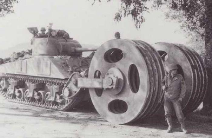 Получалось, что вариантов не так и много. Либо бомбить и обстреливать поля артиллерией - но тут расход боеприпасов огромный и никаких гарантий. Либо торить дорогу чем-то иным. Чем-то, что вскроет мины или заставит их взорваться не под гусеницами танков.