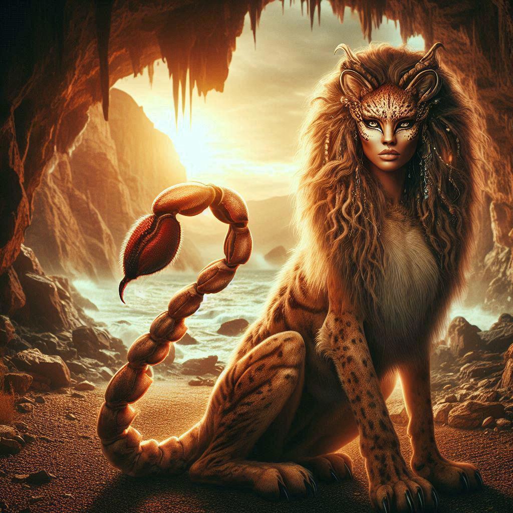 Чудовище с телом красного льва, головой человека и хвостом скорпиона..