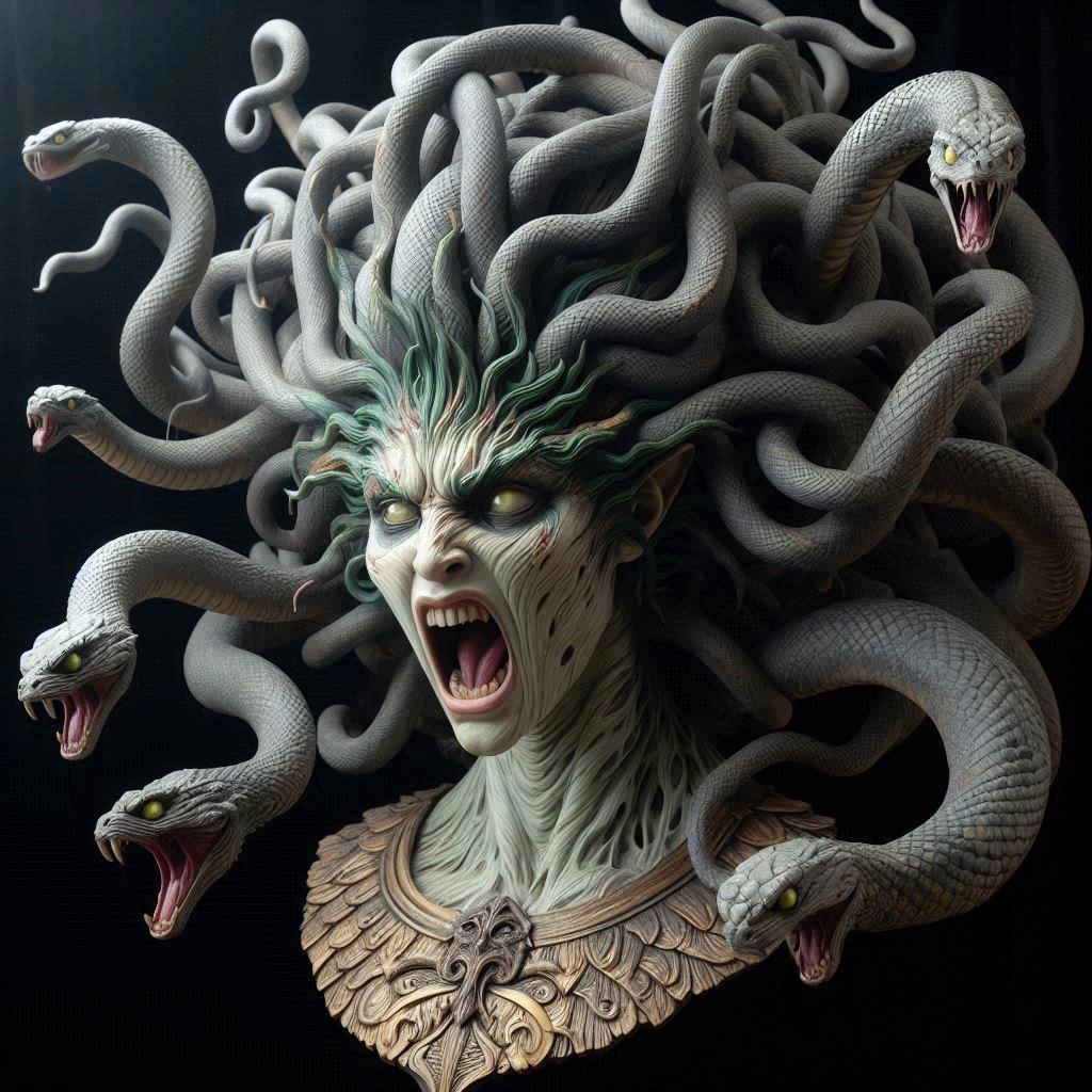 Тело горгон было покрыто чешуей, руки были медными со стальными когтями, взгляд был способен обращать в камень.