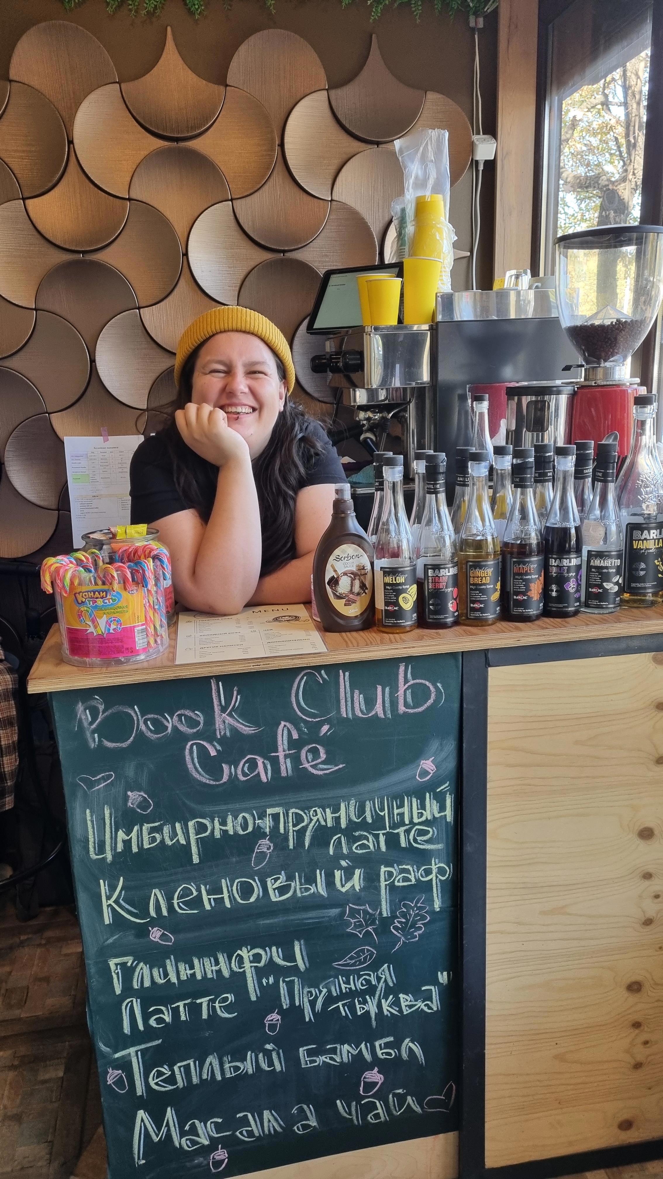 Есть небольшой мягкий диванчик. Заказала кофе, посидела, просмотрела книги, побеседовала с читательницей. Да, еще есть интересные открытки с известными писателями. Все можно заказать онлайн.