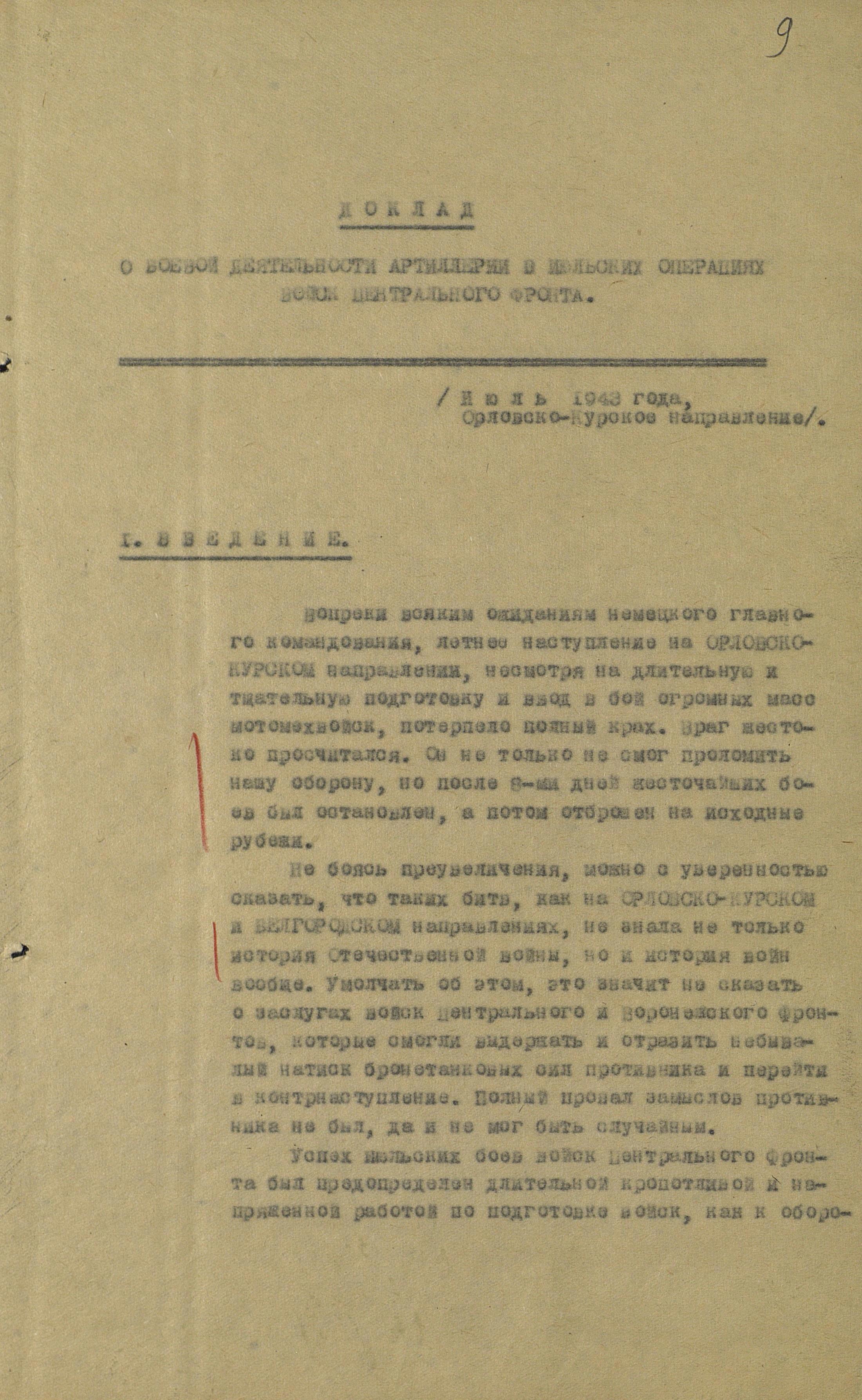 В дополнение к "Докладу о действиях артиллерии Центрального Фр..." в Курской битве