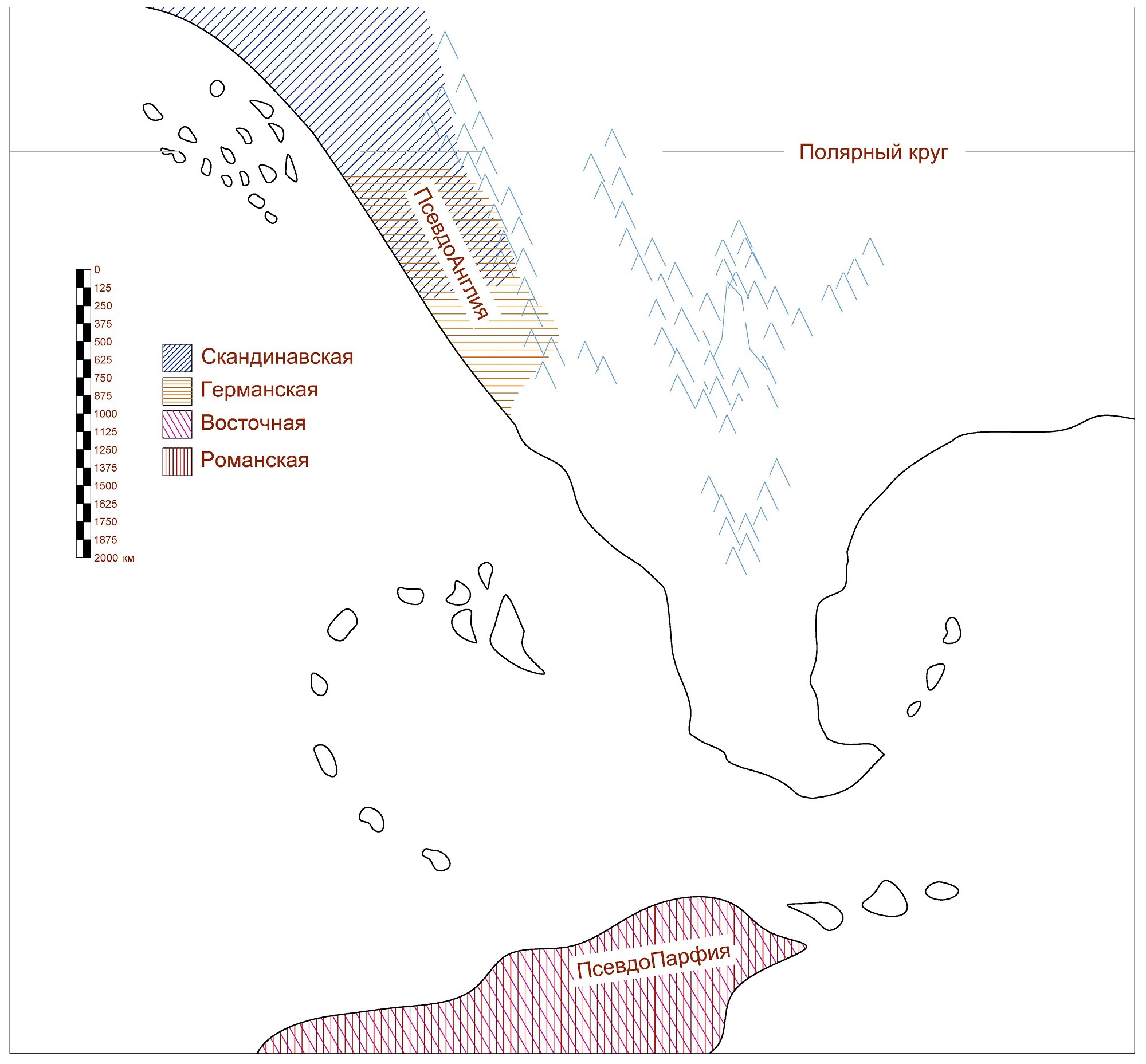 Я предположил, что наилучший вариант – это переселение целого народа с южного материка на северный, в данном случае – романской культуры. В истории есть аналоги: Великое переселение, причиной которого выступили гунны. Только здесь не готы ехали грабить Рим, а сам Рим отправился грабить германцев. Но откуда тогда взялась ПсевдоПарфия?