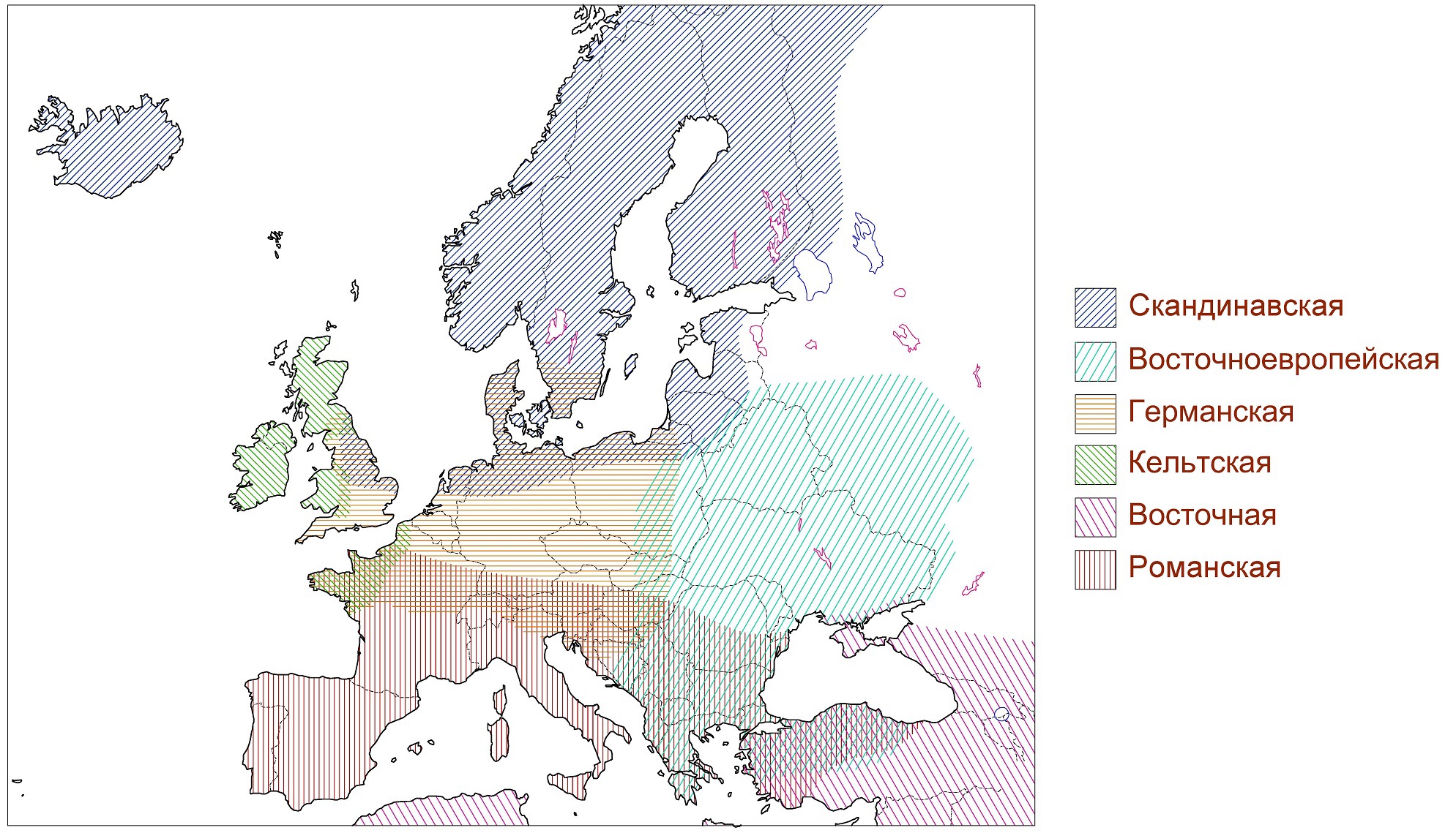 Закономерности выделить достаточно просто. В самом деле, кельтскую культуру потихоньку выдавили в Британию римляне, германская родственна скандинавской (даже названия богов у них похожие были). И германцы, и скандинавы ездили давать люлей британцам (англы и саксы, если чо, германские племена, и английский язык тоже относится к германской ветви), ну и так далее. В итоге получилось то, что имеем, и дальше, в общем-то, расселение культур сильно замедлилось, зато они начали эволюционировать. На сим стоит и остановиться.