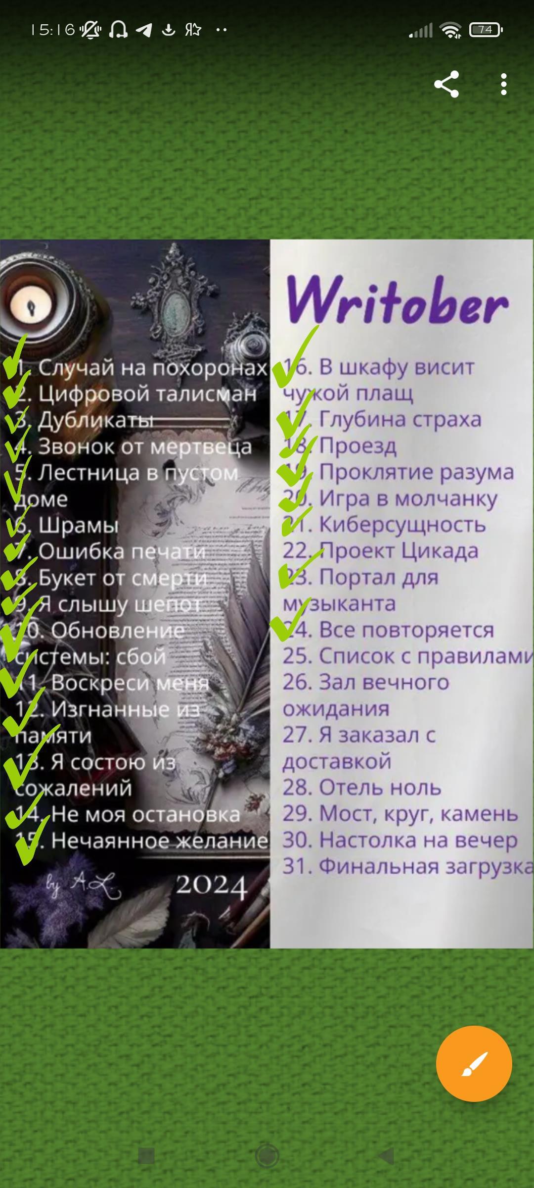 И заодно 23 день Инктобера и Райтобера. Уже...