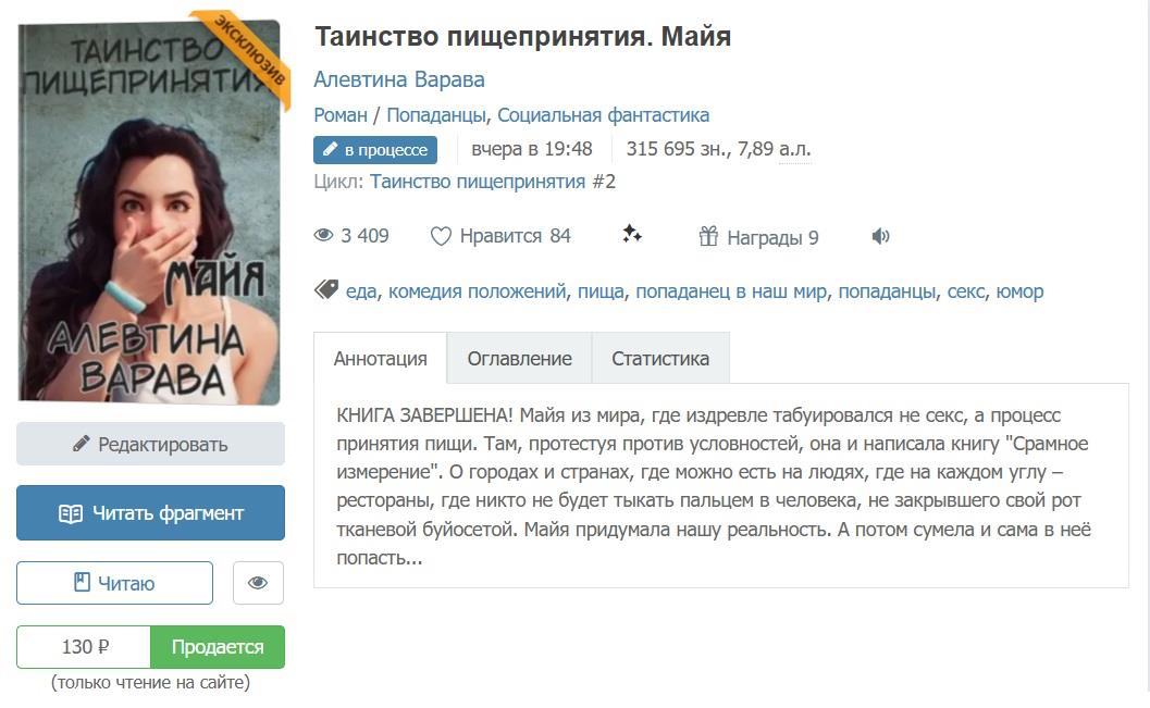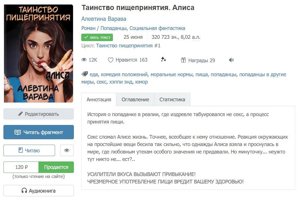Система табу на процесс принятия пищи при полном карт-бланше на секс! Обе книги окончены.