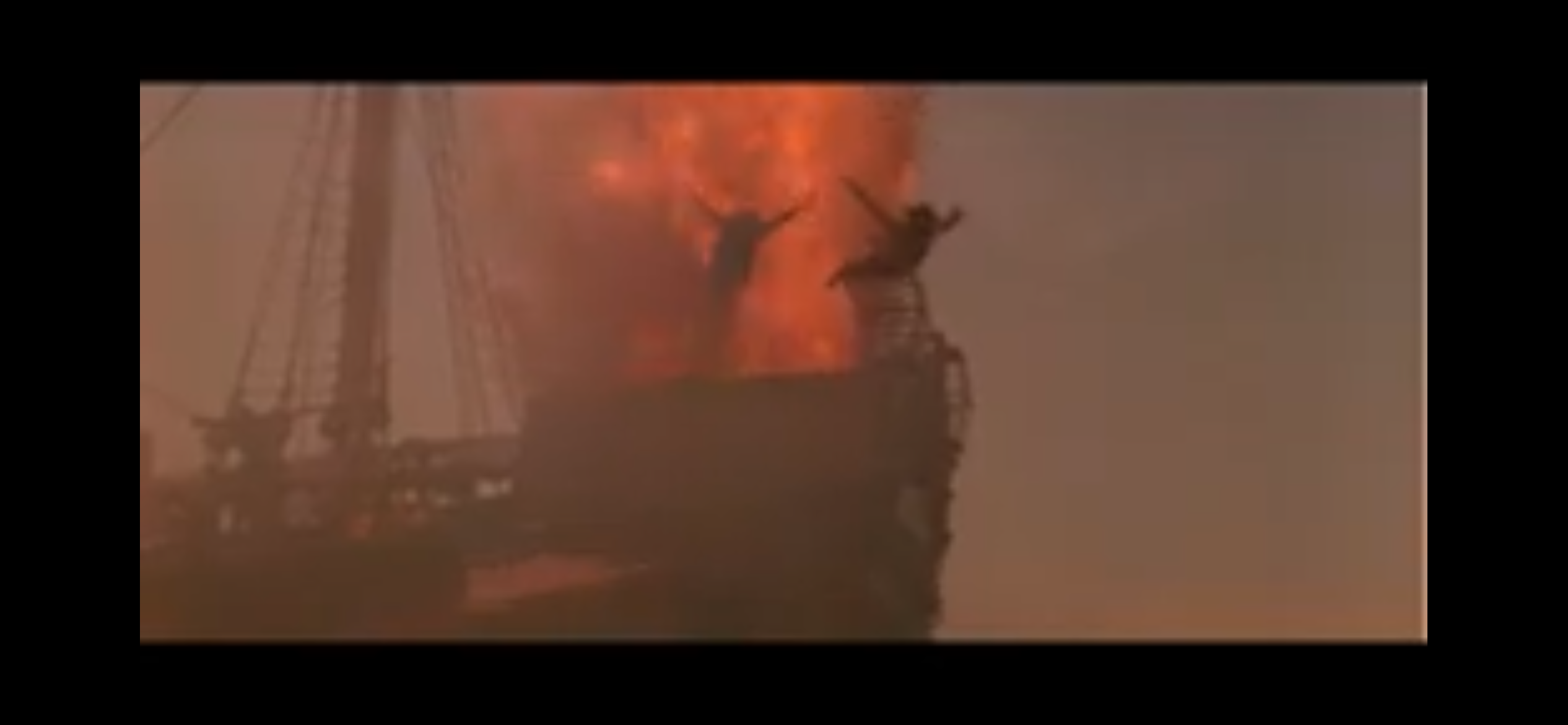 3. Аврора спасается прыжком в воду с взрывающейся "Аузонии" - (Остров головорезов).