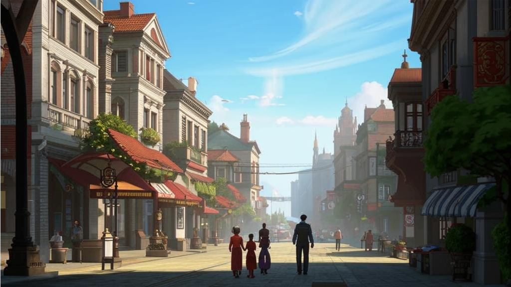 Город Ланвиль, уютно расположившийся в долине между мягко изогнутыми холмами, представляет собой интересное сочетание старого и нового. Это место, где в центре города до сих пор возвышаются старинные трёхэтажные дома с резными фасадами, сохранившие шарм прошлых эпох, а на окраинах быстро растут современные жилые кварталы. Большинство домов — уютные семейные особняки с небольшими садами, не превышающие трёх этажей, что придаёт городу атмосферу тишины и уюта.