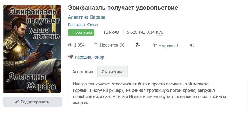 Гордый и могучий рыцарь, не снимая пропахшую потом броню, загрузил полюбившийся сайт «ПисарьНыне» и начал изучать новинки в своих любимых жанрах.