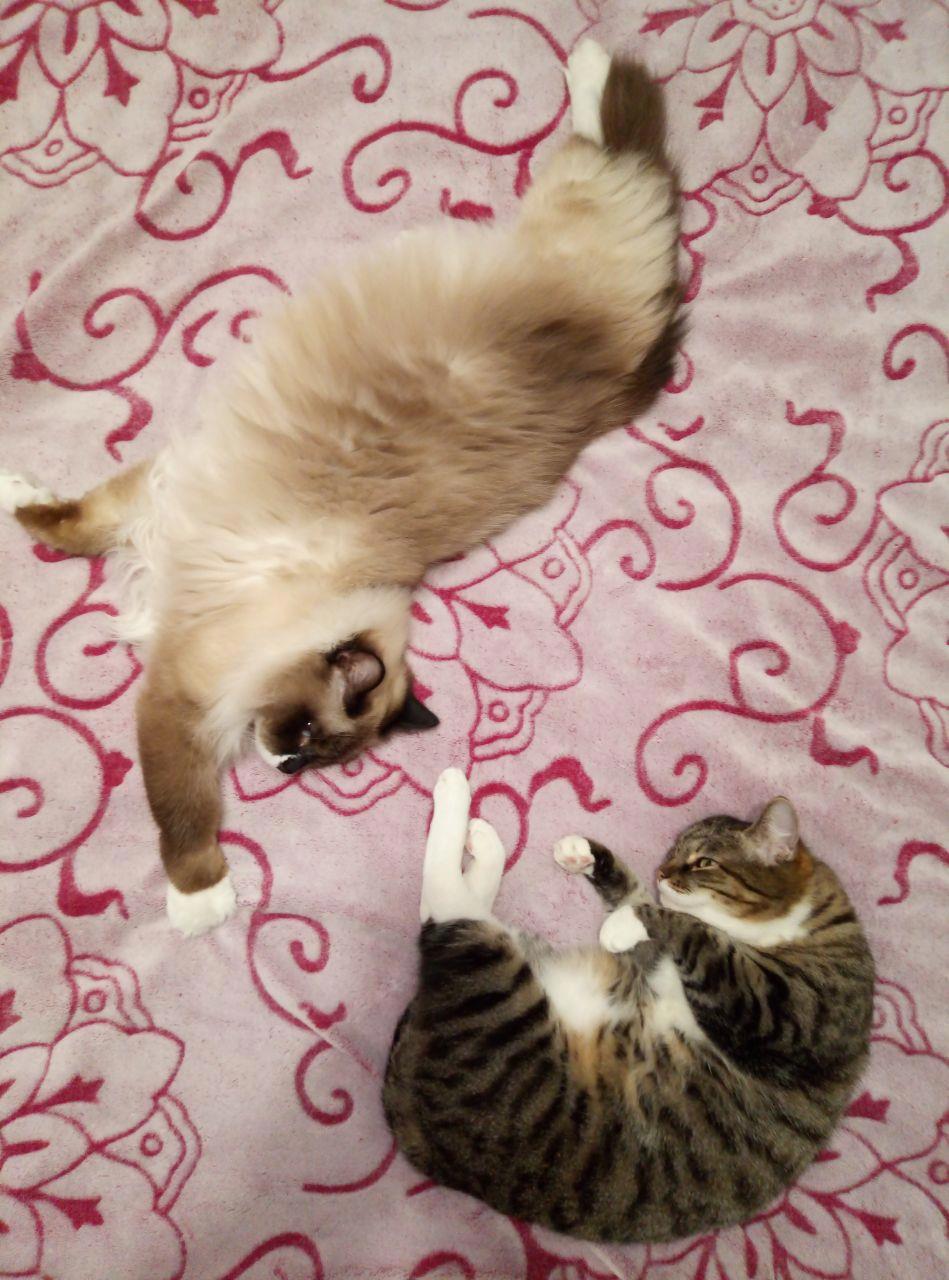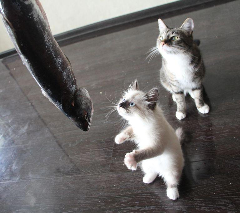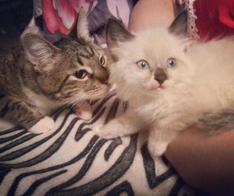 Первое совместное фото. Тиря так обрадовался пищевому конкуренту, что месяца три пытался его загрызть