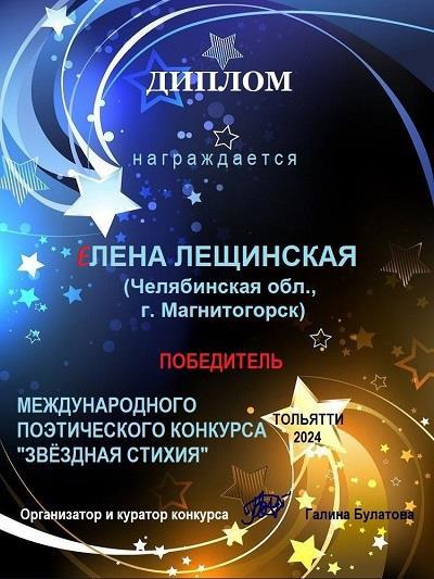 Автор: Елена ЛещинскаяЗачем нужны литконкурсы, если это, скажем, не Нобелевка и прочее суперпуперпрестижное с денежными премиями? Это способ выгулять стишки, что называется, и других почитать и себя показать. Иногда это допбонусы. Например, за победу в конкурсе стихов на космическую и околокосмическую тему «Звёздная стихия» пришлют сувенир (какой именно, пока не знаю, тем любопытнее).