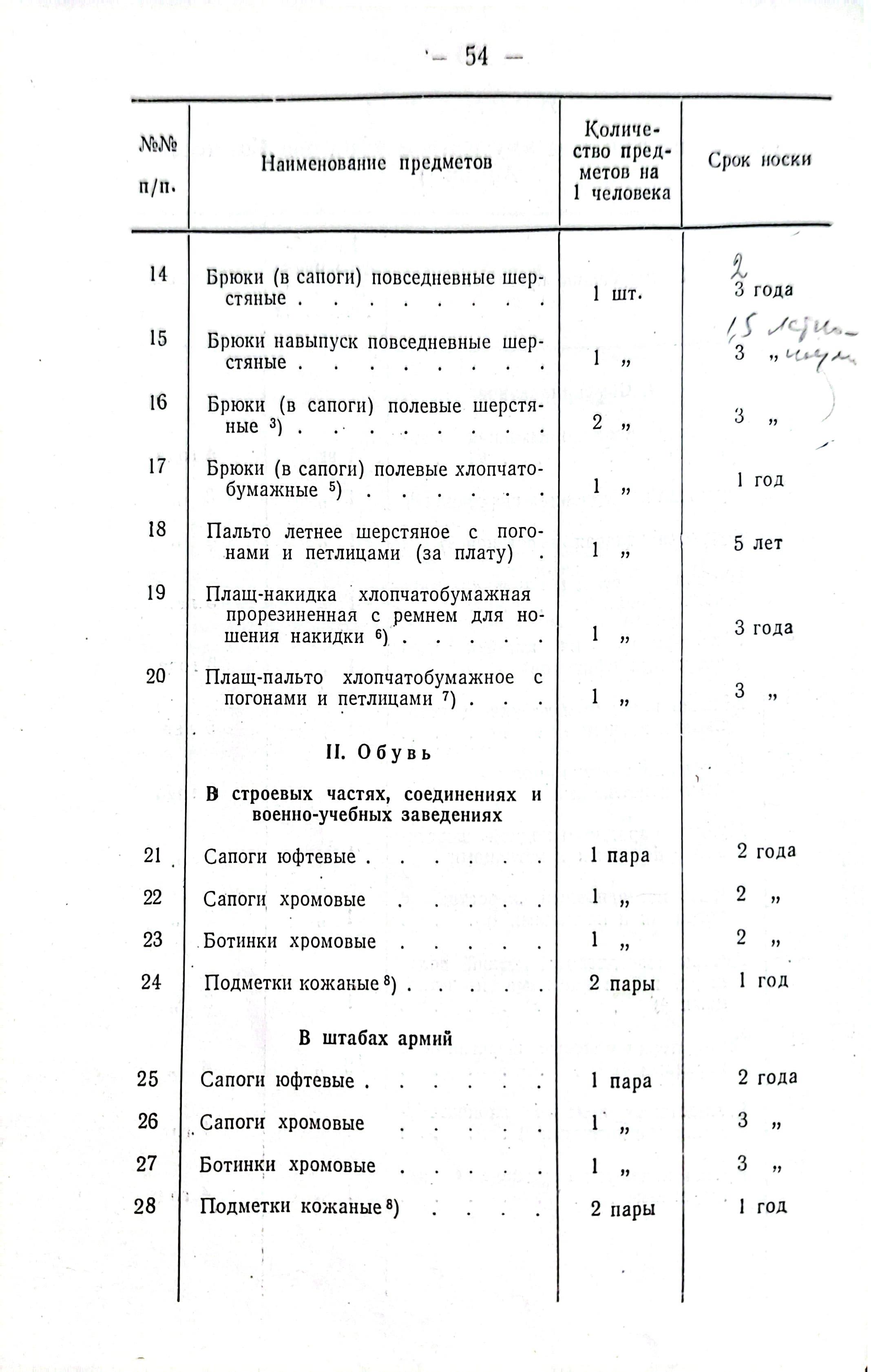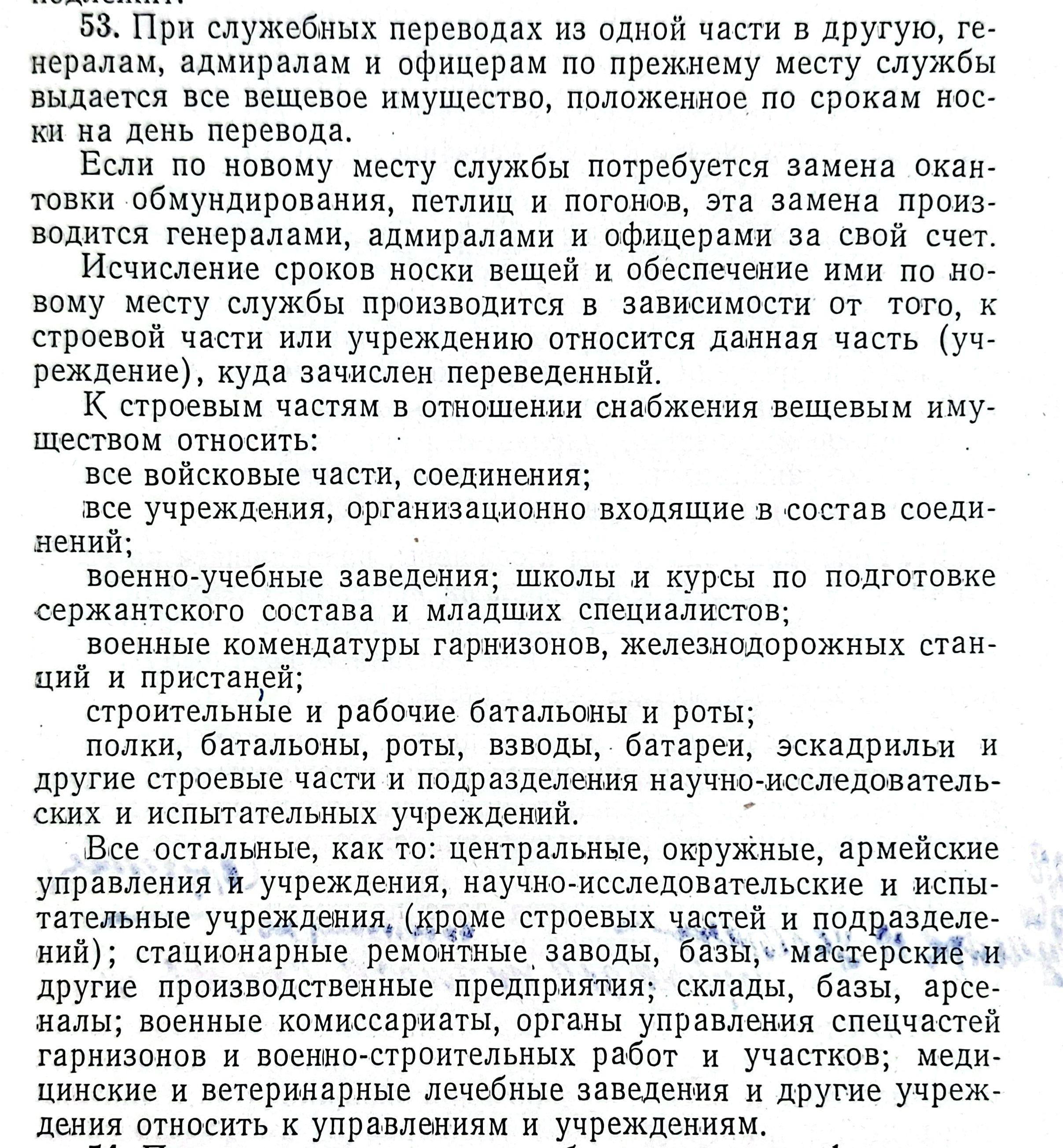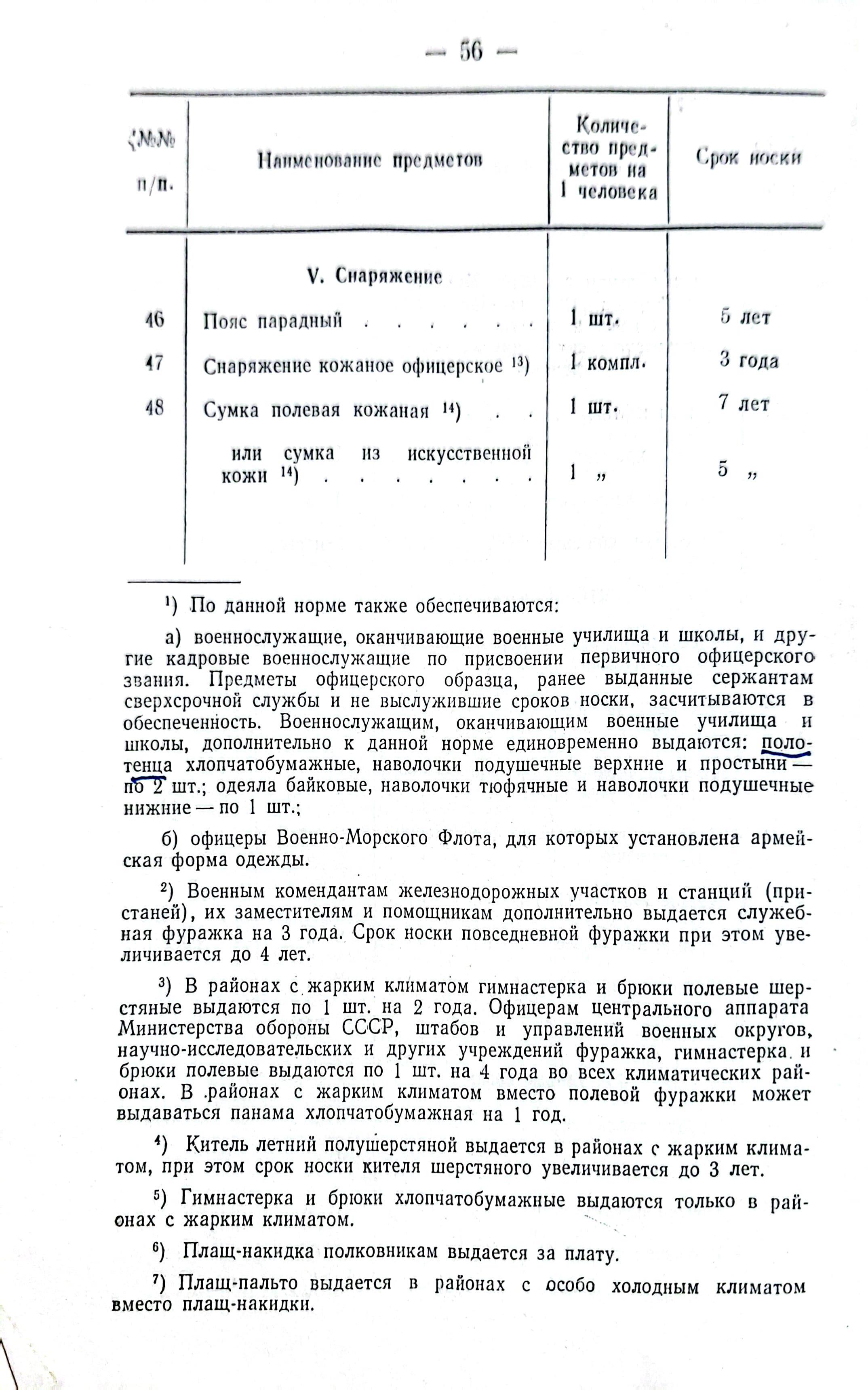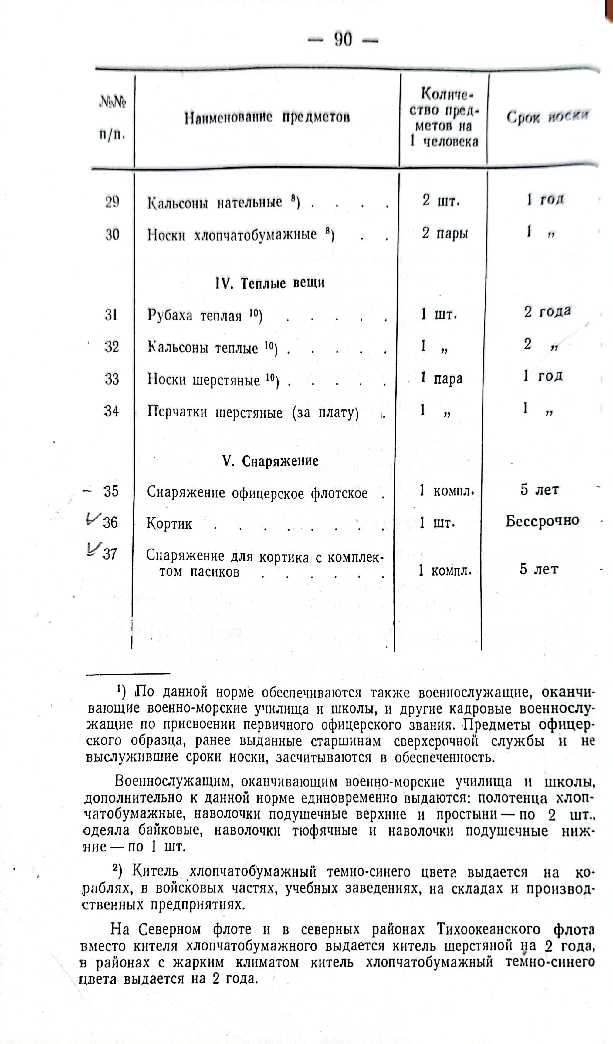 Объясню в чем дело. Возьмём, к примеру, офицера ВМФ, отслужившего один год, после окончания военно-учебного заведения. По выпуску ему выдали шапку, шинель, тужурку и всё остальное, что по нормам положено (Нормы снабжения офицеров ВМФ и офицеров СА – под спойлером). Через год службы ему предложили перевод в Ракетные войска. Он согласился и получив общевойсковое обмундирование, флотскую форму спрятал в чулан. А теперь смотрим нормы: по ним выходит, что оставшийся срок шапки-ушанки из цигейки с кожаным верхом – 3 года, шинели повседневной и тужурки – аналогично. То есть носить их офицеру ещё пару лет. «Сухопутную» шапку, шинель и китель ему выдали тоже на три года. Смотрим вновь статью 54 и понимаем, что следующая выдача обмундирования будет только через пять лет.