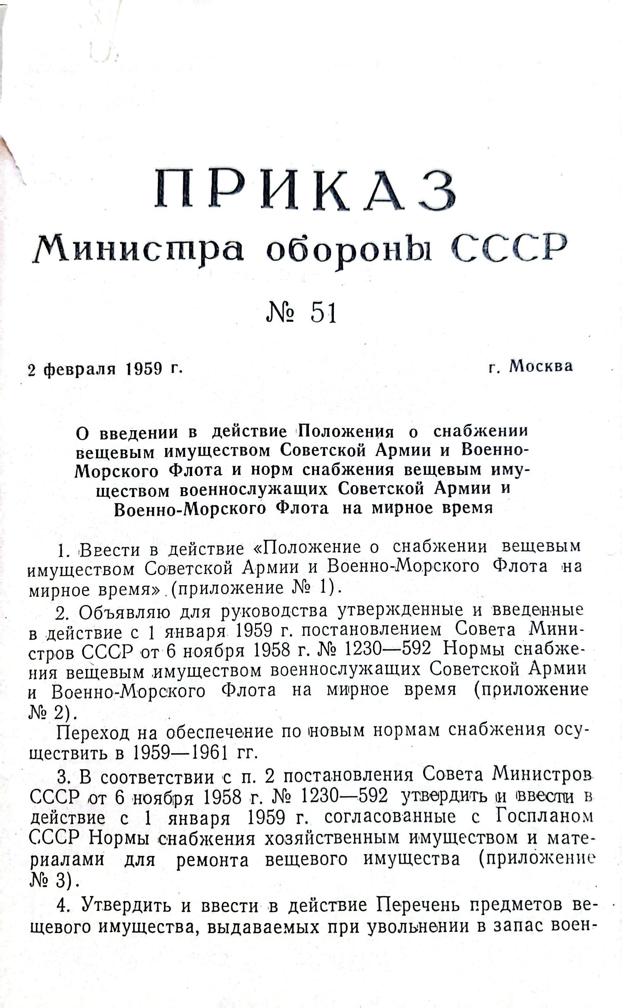 Открываем приказ МО СССР от 2 февраля 1959 г. № 51 и смотрим.