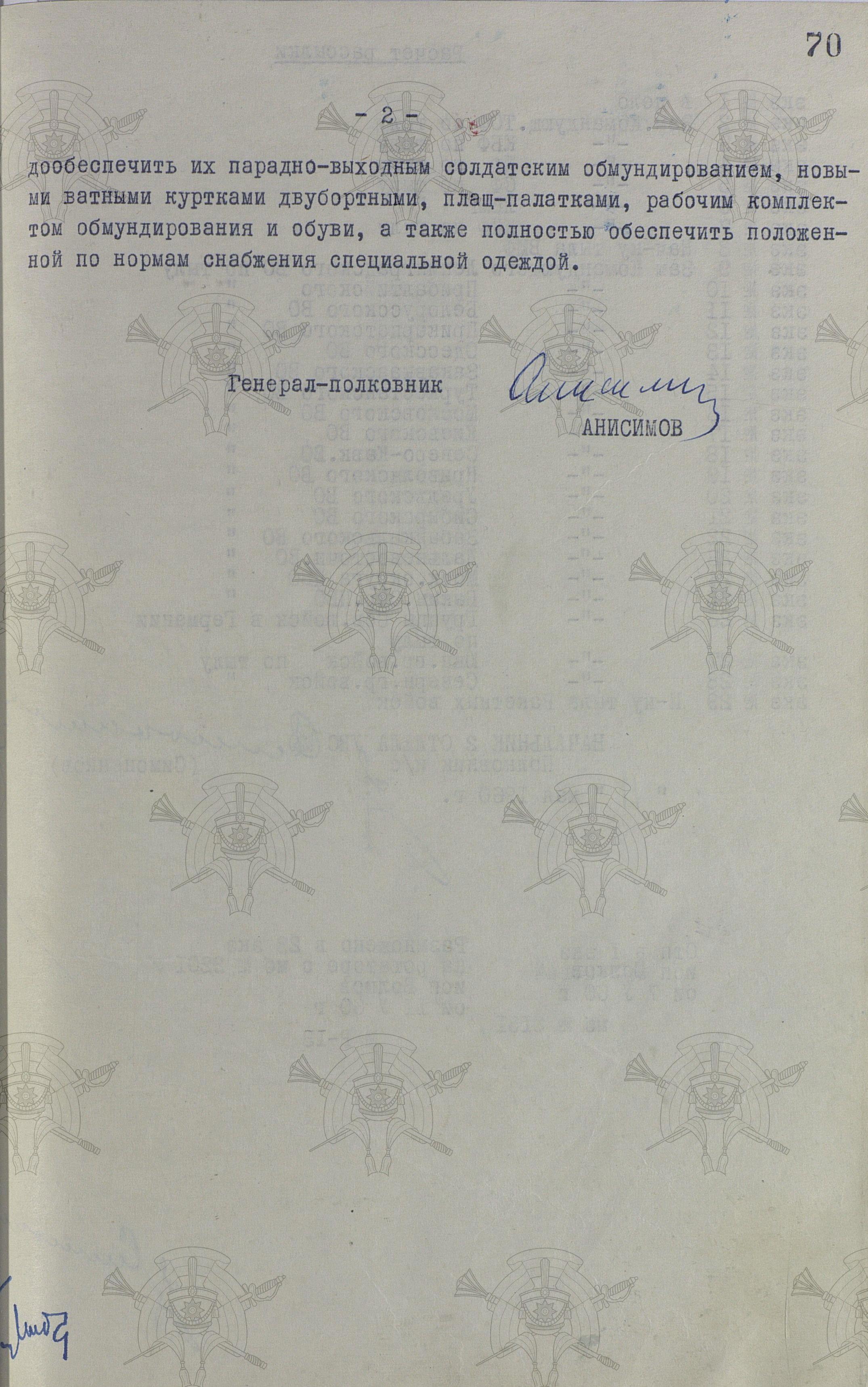 Директиву за подписью генерал-полковника Анисимова Н.П. зам. ком. флотами по тылу».