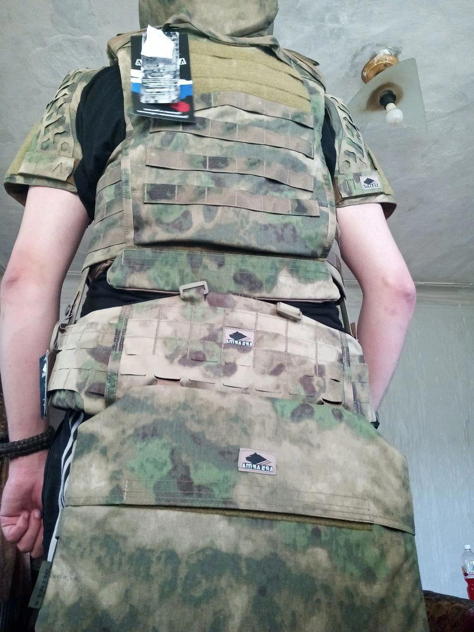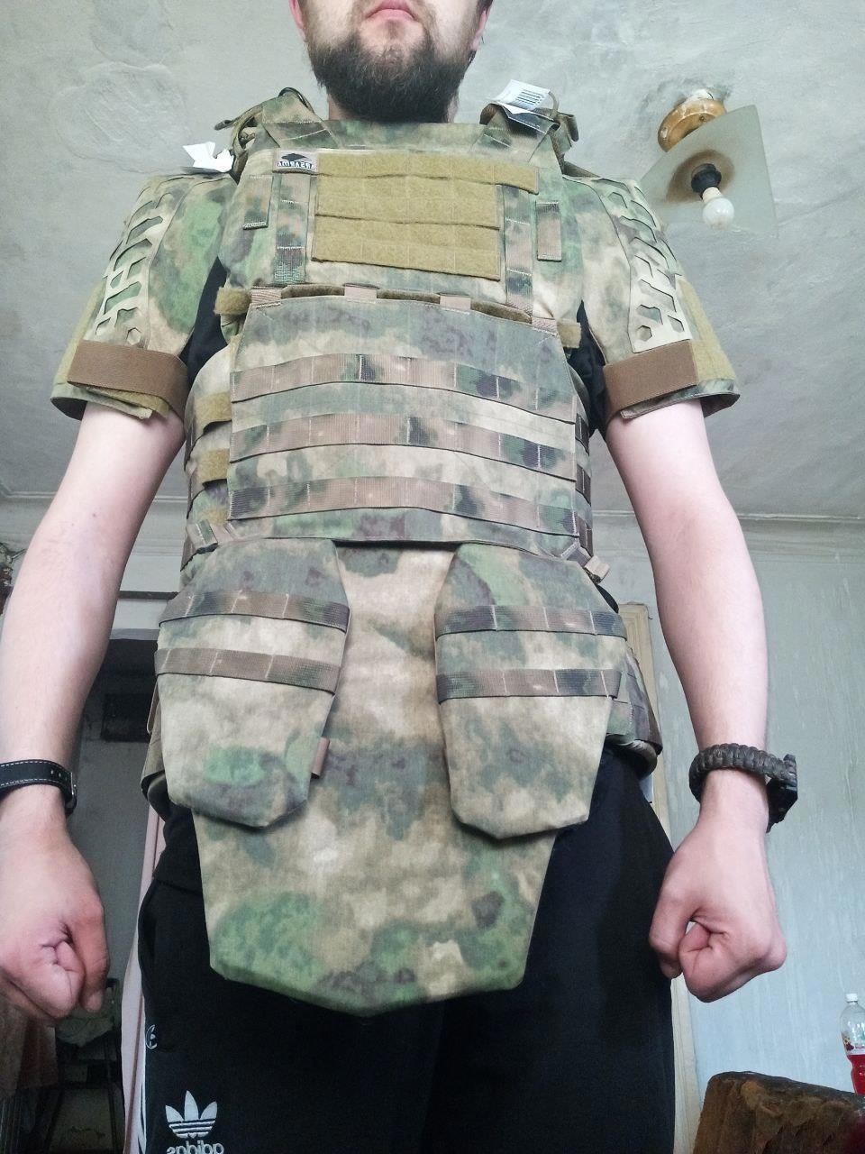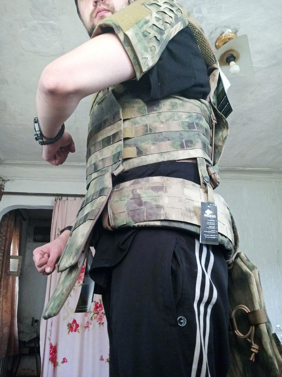 Плюсы - ну, всё, остальное. Удобный, большая площадь защиты. Отдельно понравились пластинки СткСС. По сути - элементарная конструкция. Две металлические пластины, которые одним концом упираются в жилет, а другим в пояс и тем самым разгружают плечи и переносят вес на пояс. Позвоночник скажет вам за такое спасибо)