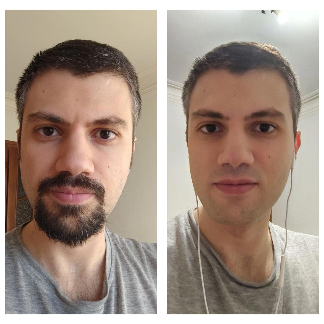 Но перед тем, как сбрить полностью, я не удержался и слегка побаловался с формой. Вот, как выглядит «до» и «после»: