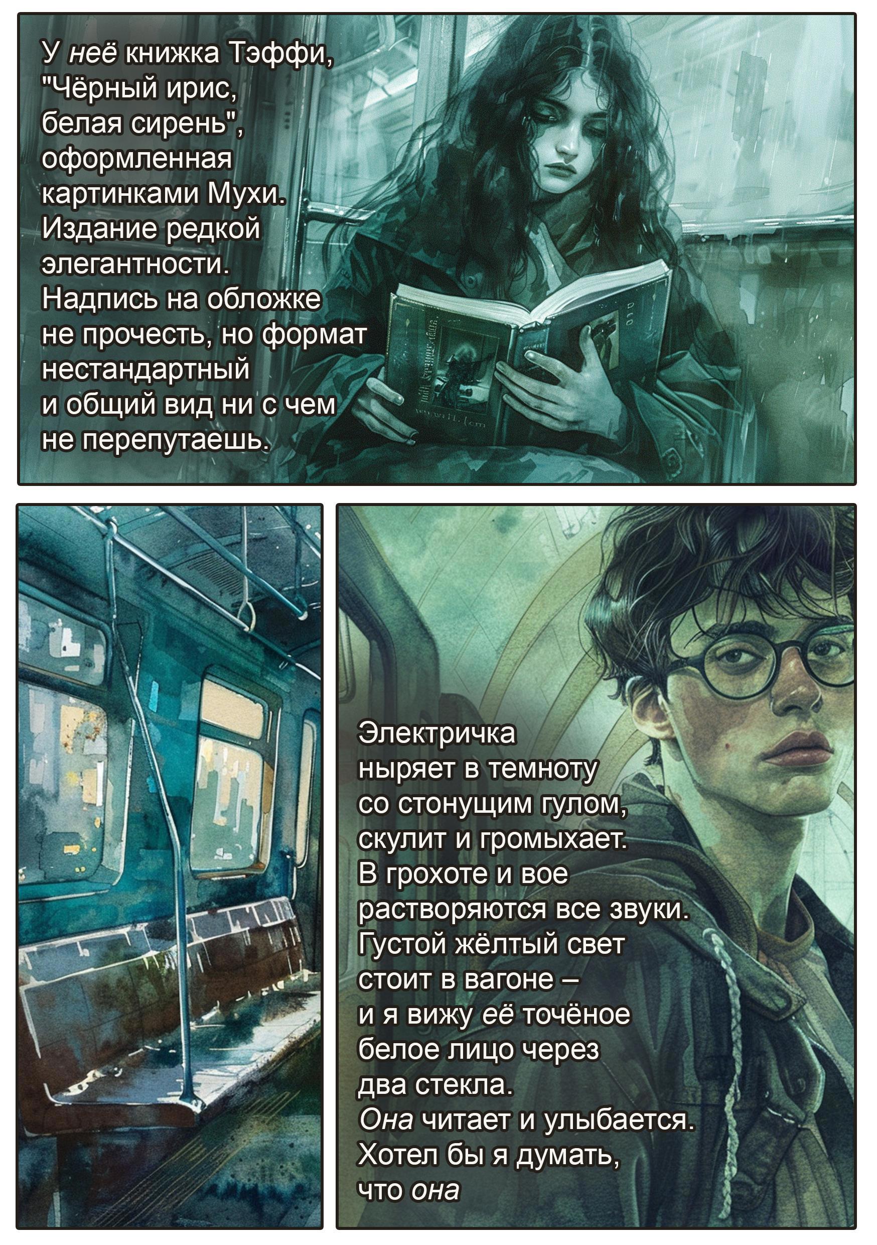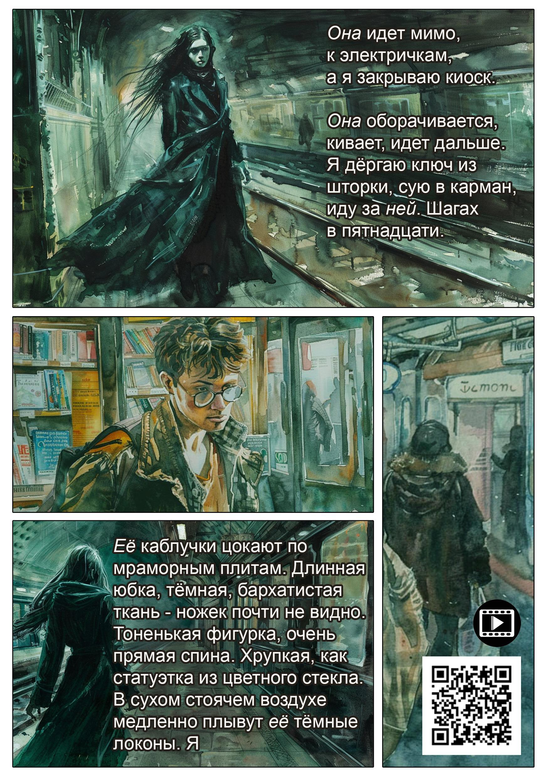 Текстовый отрывок начитала нейросеть Suno, спасибо ей большое. Иллюстрации добыл автор в нейросетях. Вся остальная доработка до конечного результата - моя. В цитарте применена новая фишка: qr-код, по которому можно посмотреть видео. Объединяем жанры))