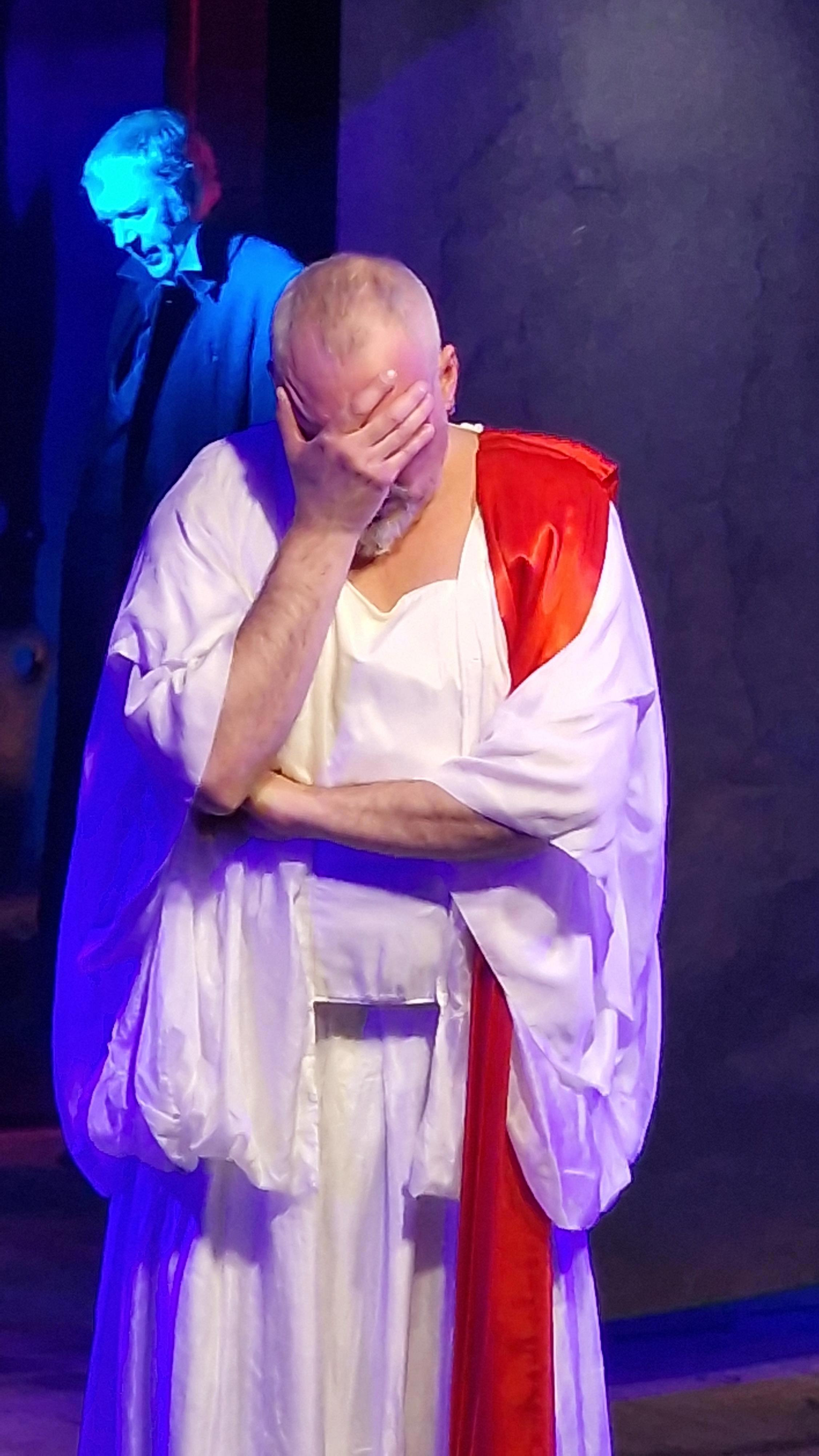 Теперь вернёмся к самому началу. Поначалу, увидев Коровьева в качестве рассказчика, я подумала, что отыгрывается не самая популярная литературоведческая версия о том, что рассказчик в «Мастере и Маргарите» - Коровьев. Версия любопытная, хотя я её не разделяю. Но оказалось всё проще: рассказчиком на протяжении спектакля выступают разные персонажи.