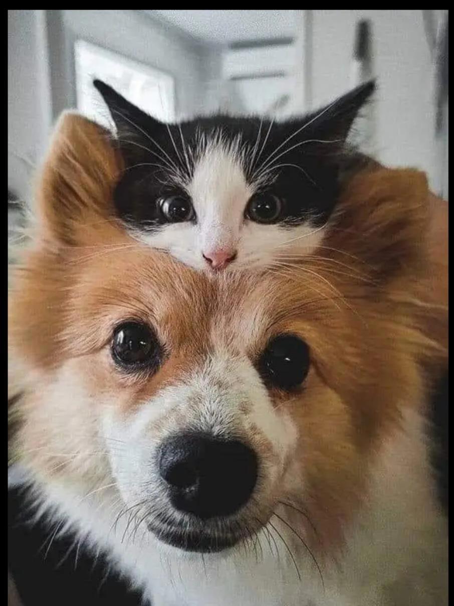 Жене досталась собака, а бывшему мужу кот. Они вместе выросли. Котёнка и щенка разом взяли, когда поженились. Tакие вот дела.