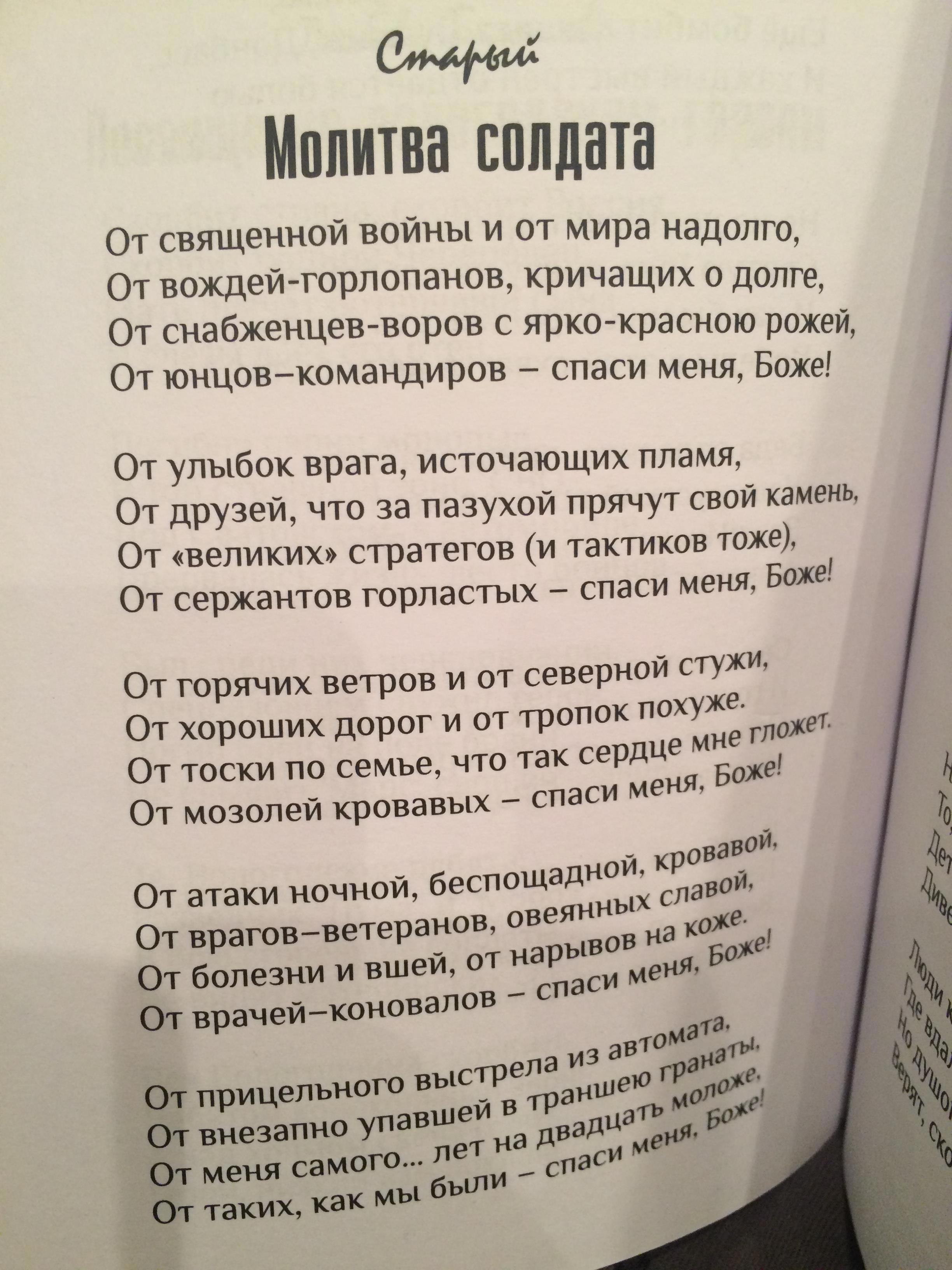 Стихотворение "Молитва солдата" https://author.today/work/377610, напечатано в альманахе "Родина" № 4 за 2024 год.