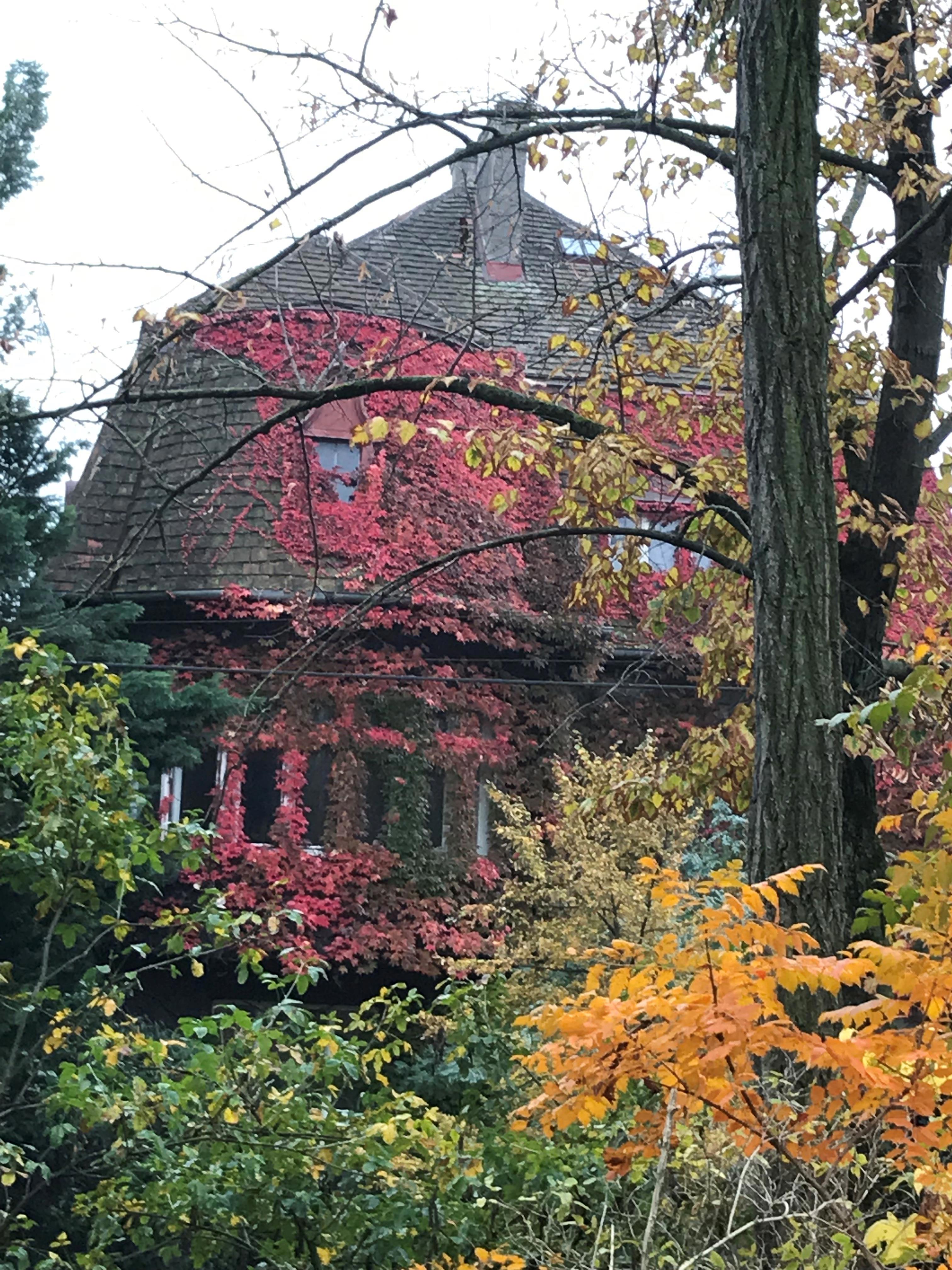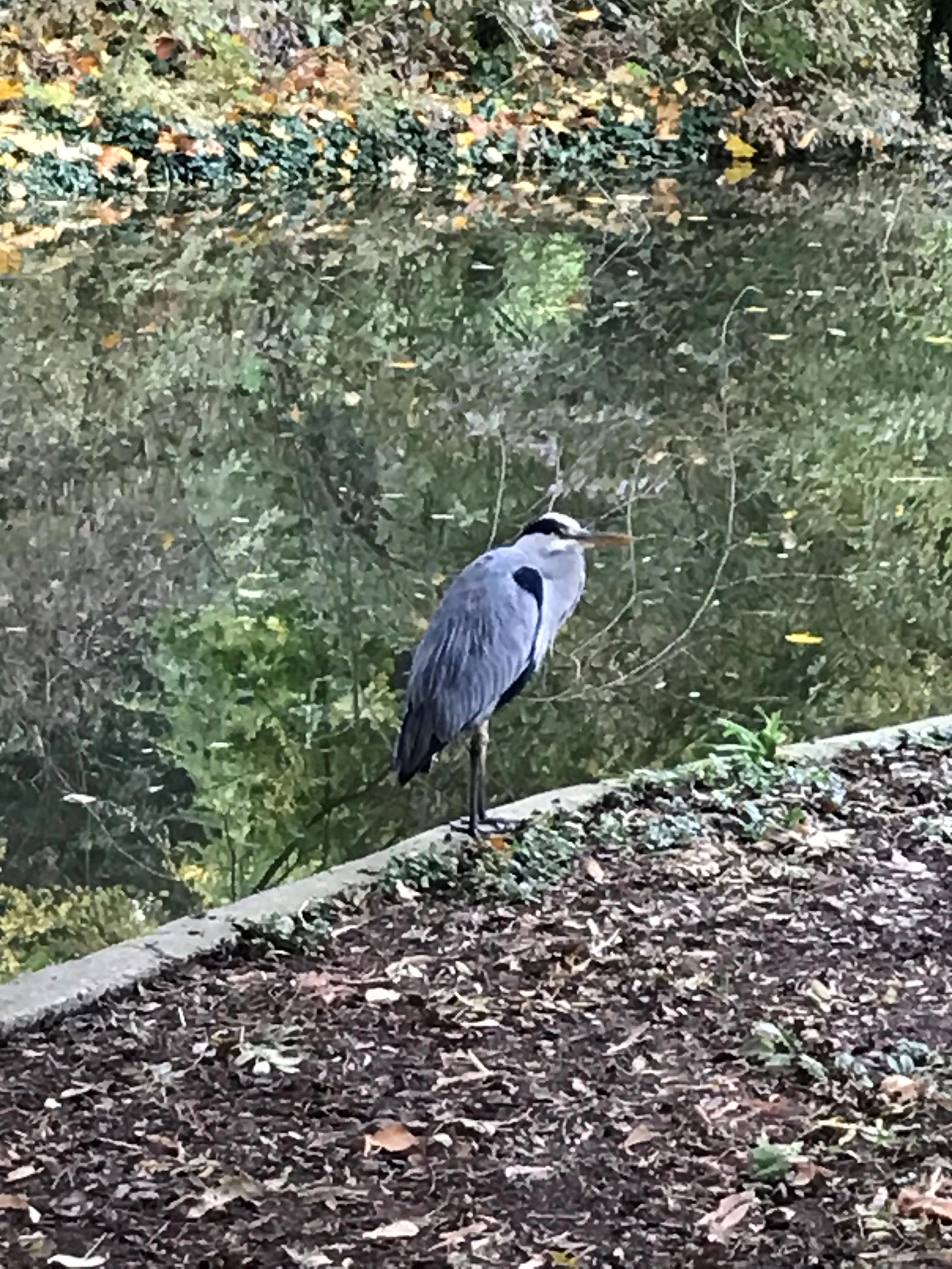 В парке не на самом краю, но и вовсе не в центре города собрались цапля, араукария и дуб, а сразу за забором присоседился