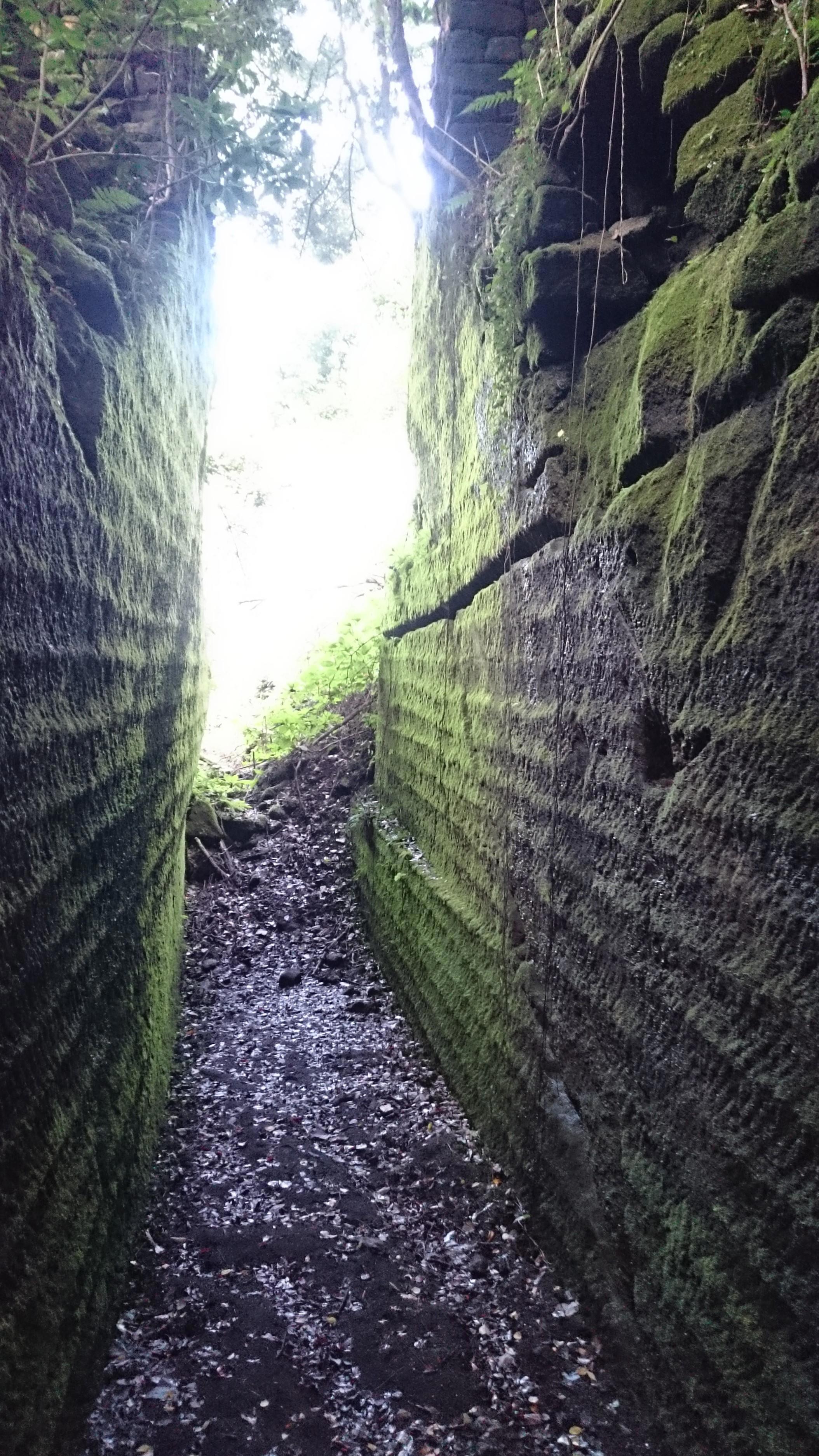 Фотография просто так, для красоты. Это горная дорожка моей любимой горы Нокогири в префектуре Тиба. Гора маленькая (наверх часа три подъёма), но очень живописная. Раньше там добывали камень, поэтому таких проходов много, и они все уже поросли мхом.