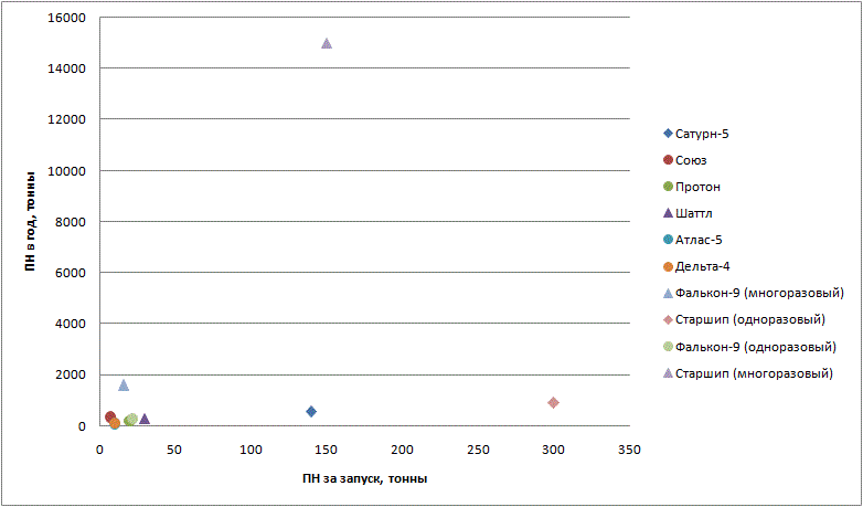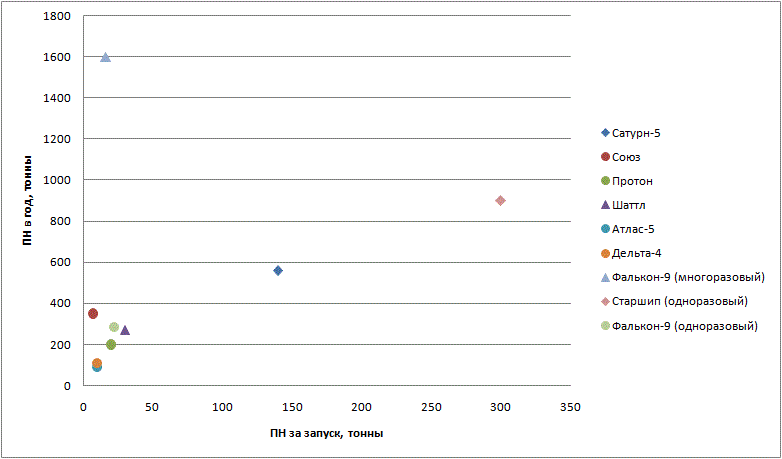 Добавлен Старшип-многоразовый в предположении что выйдут на 100 запусков в год.