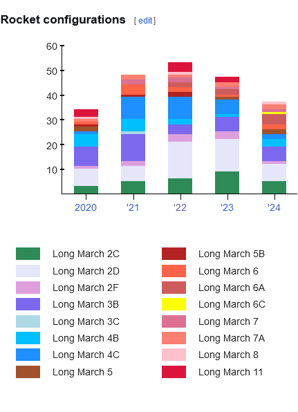 Для всех ракет взяты максимальные темпы запусков. Так для Союза это 50 в год на которые вышли в СССР 1980х. Хотел добавить китайцев но: