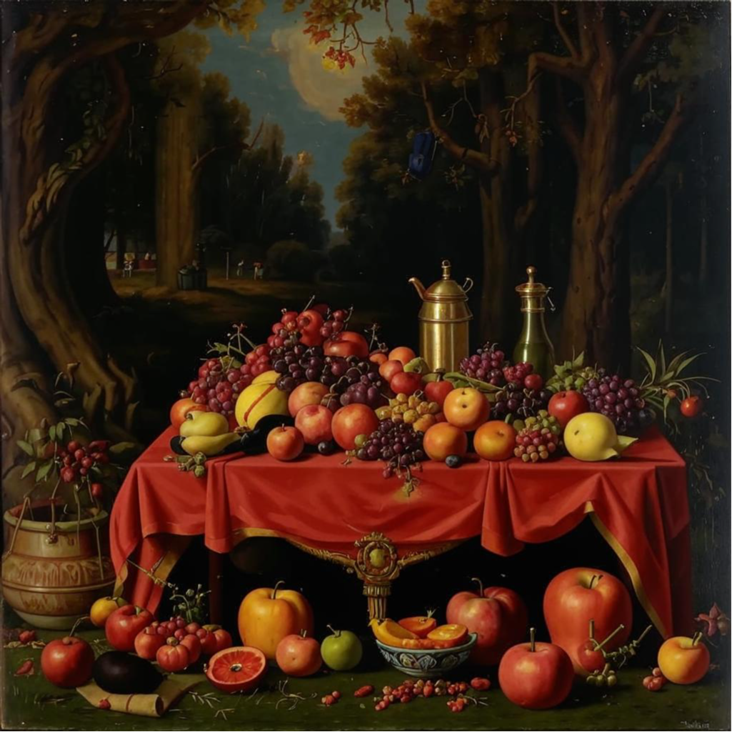 На празднике были хозяевами король и королева. Он – золото, она – черненое серебро. Он – могучий, зрелый, в распахнутой на груди рубахе и струящейся мантии, отороченной мехом, в короне из листьев и ягод. Она – еще юная, с черными косами до колен, в венке из маков, в наряде словно из перьев сороки. Рука об руку они шли по бесконечной анфиладе, которая, казалось, множилась перед ними, раскрываясь всё больше.